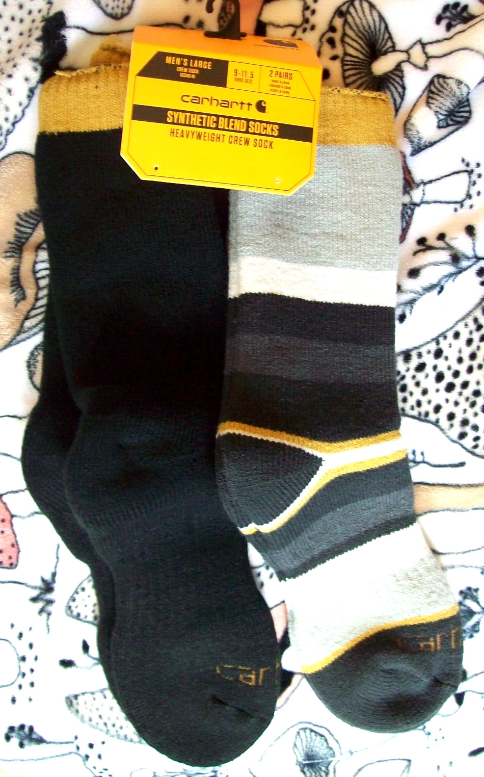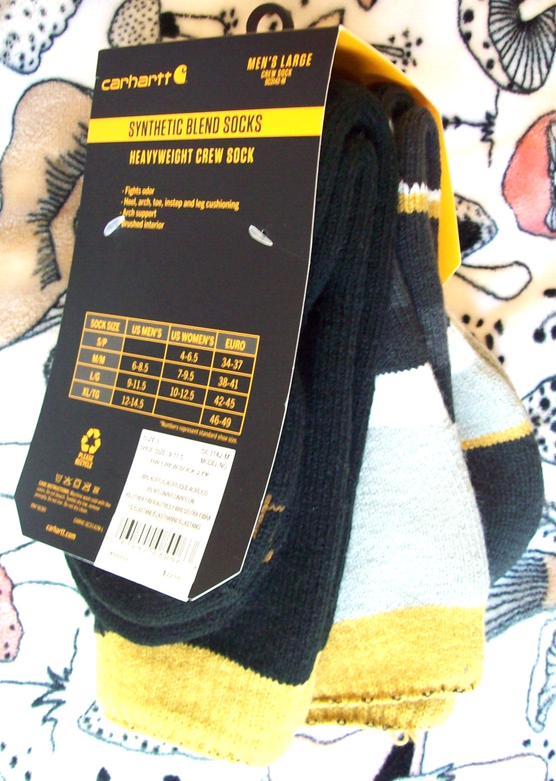 CARHARTT 2 Pairs CLASSIC HEAVYWEIGHT CREW SOCKS Blk/Gray -Large 9-11.5/10-12.5