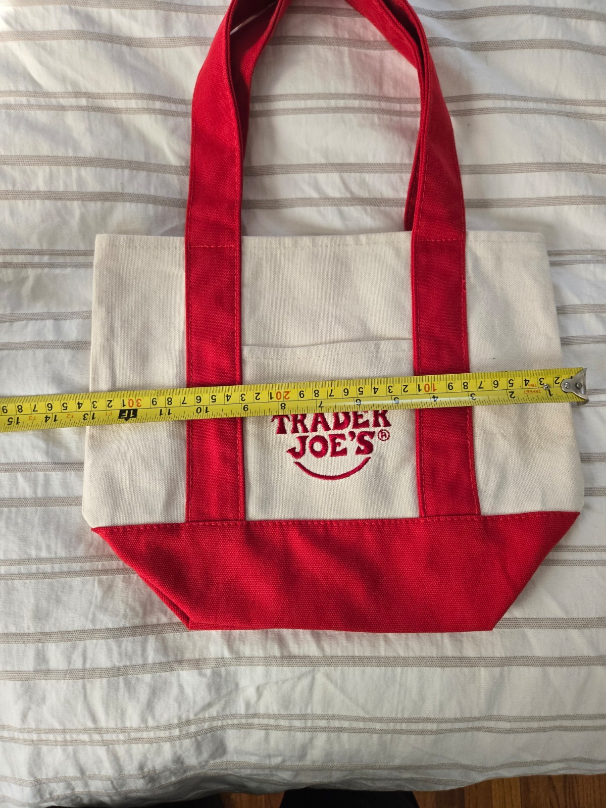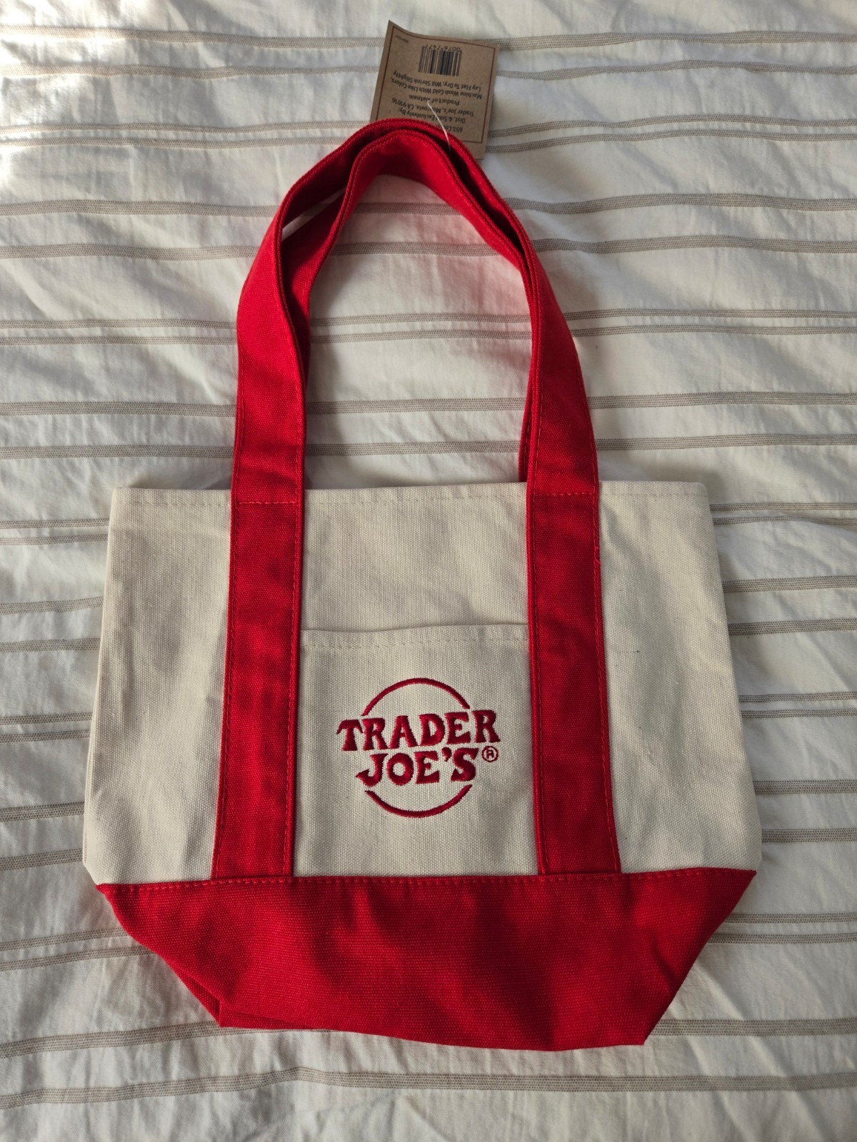 как выглядит NWT Trader Joe s Mini Canvas Reusable Tote Bag in Red - LIMITED EDITION фото