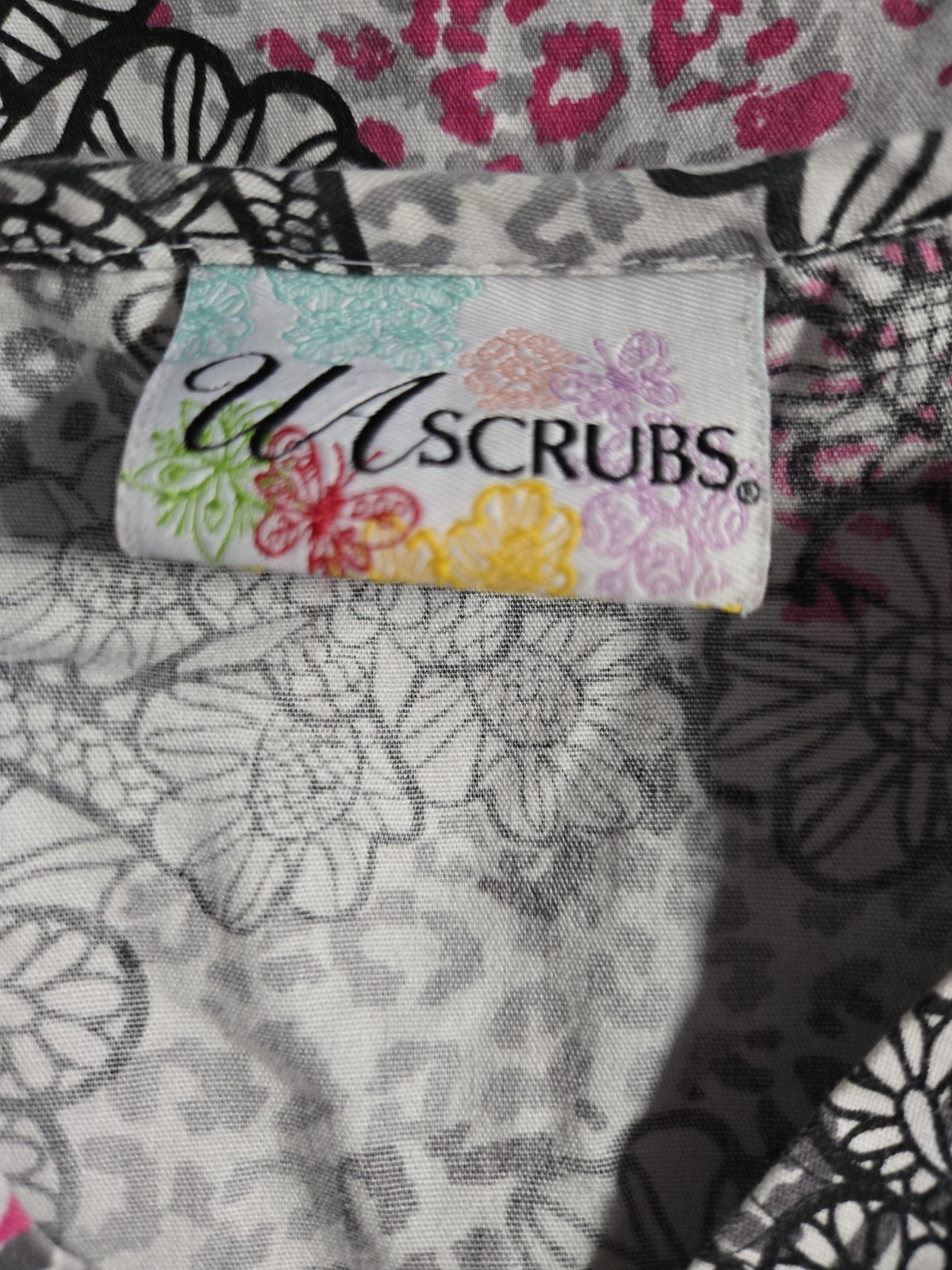 UA Scrubs Scrub Top size M-Pink/Black Floral-Chest 23.5/L 27