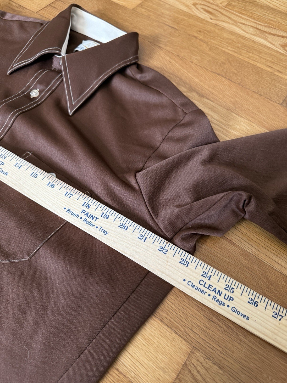 Vintage 60's 70's ADG Brown MOD Collar Polyester Shirt 16 Disco Rockabilly