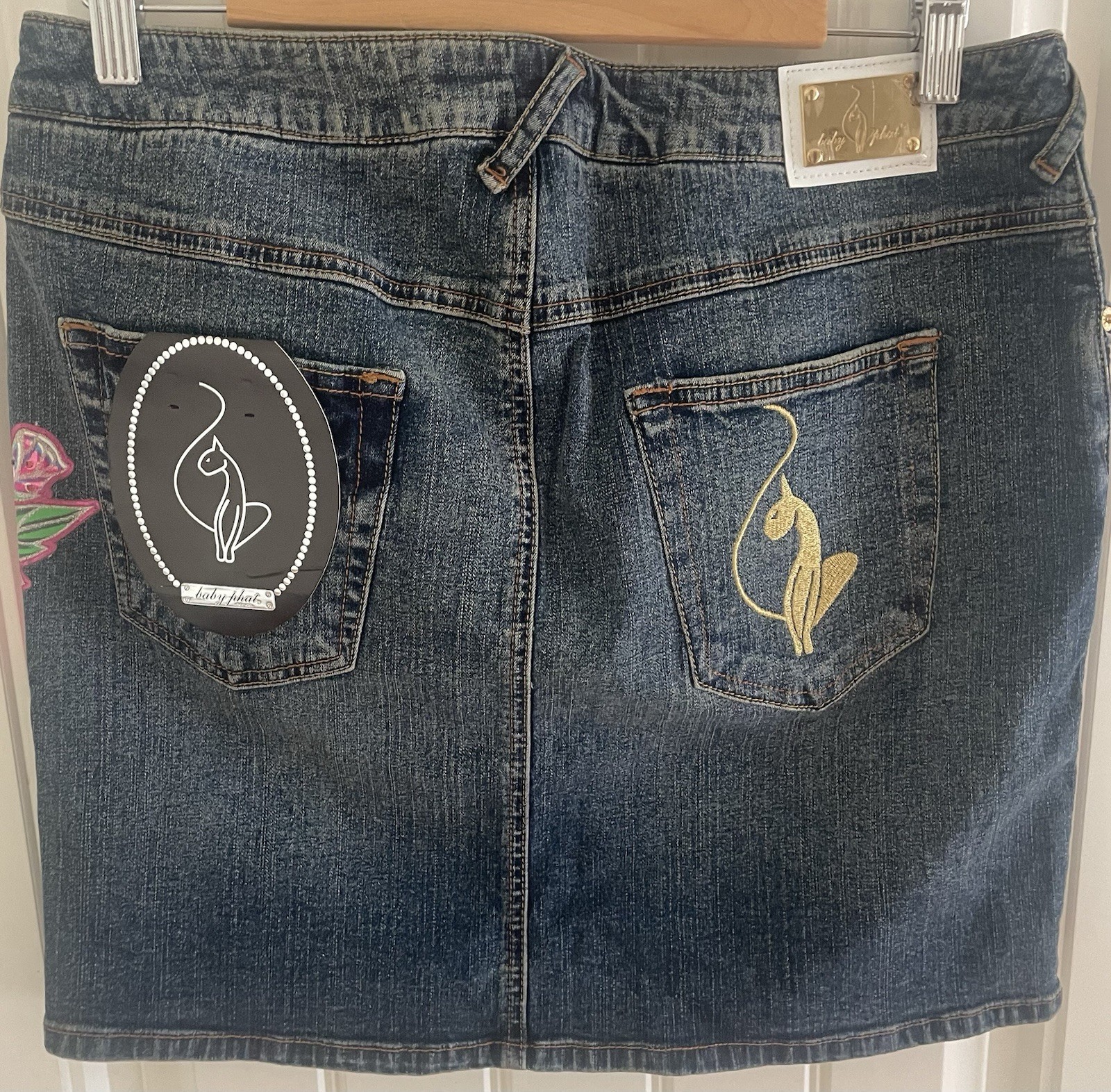 BABY PHAT Jean Co Y2K Denim Skirt Mini Size 14 Embroidered Sequin