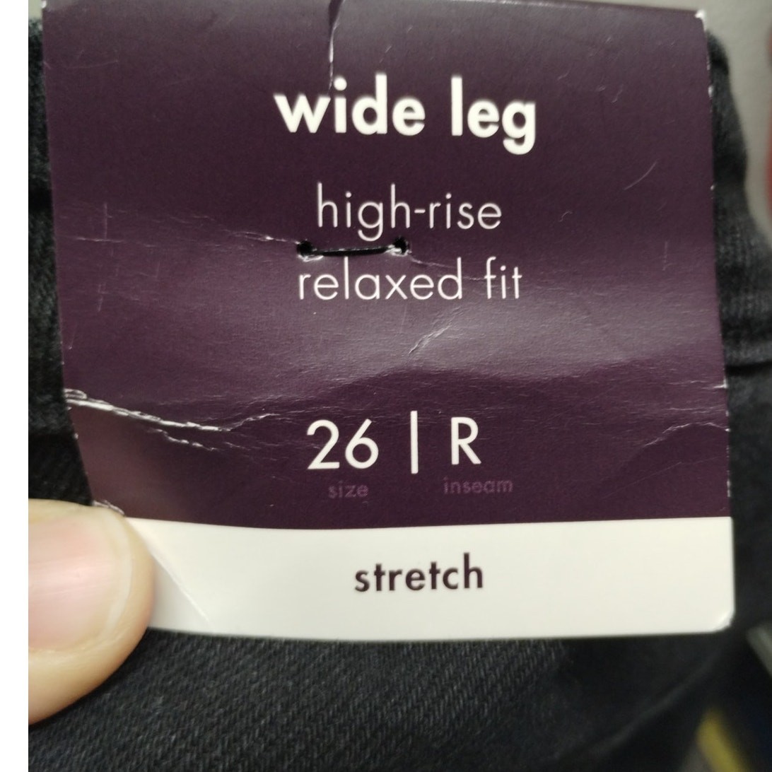 AVA VIV NWT Plus Size 26 Black Wide Leg High-Rise Relaxed Fit Stretch Jeans