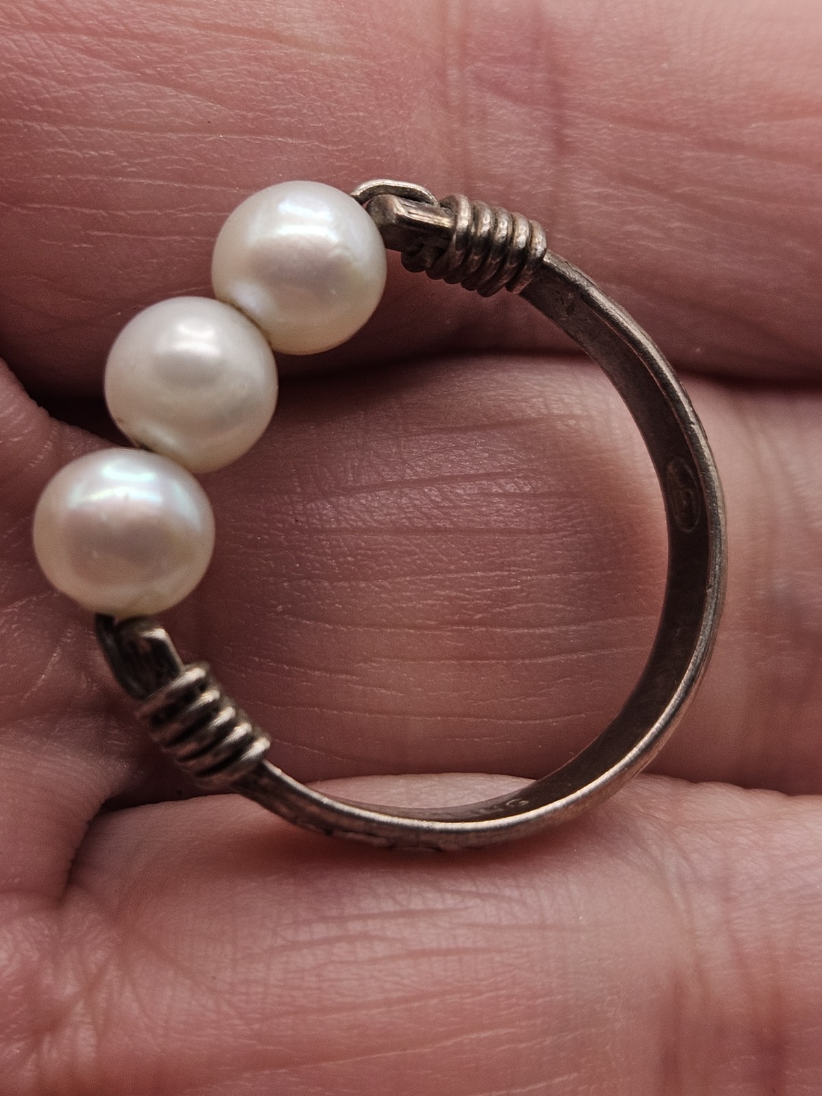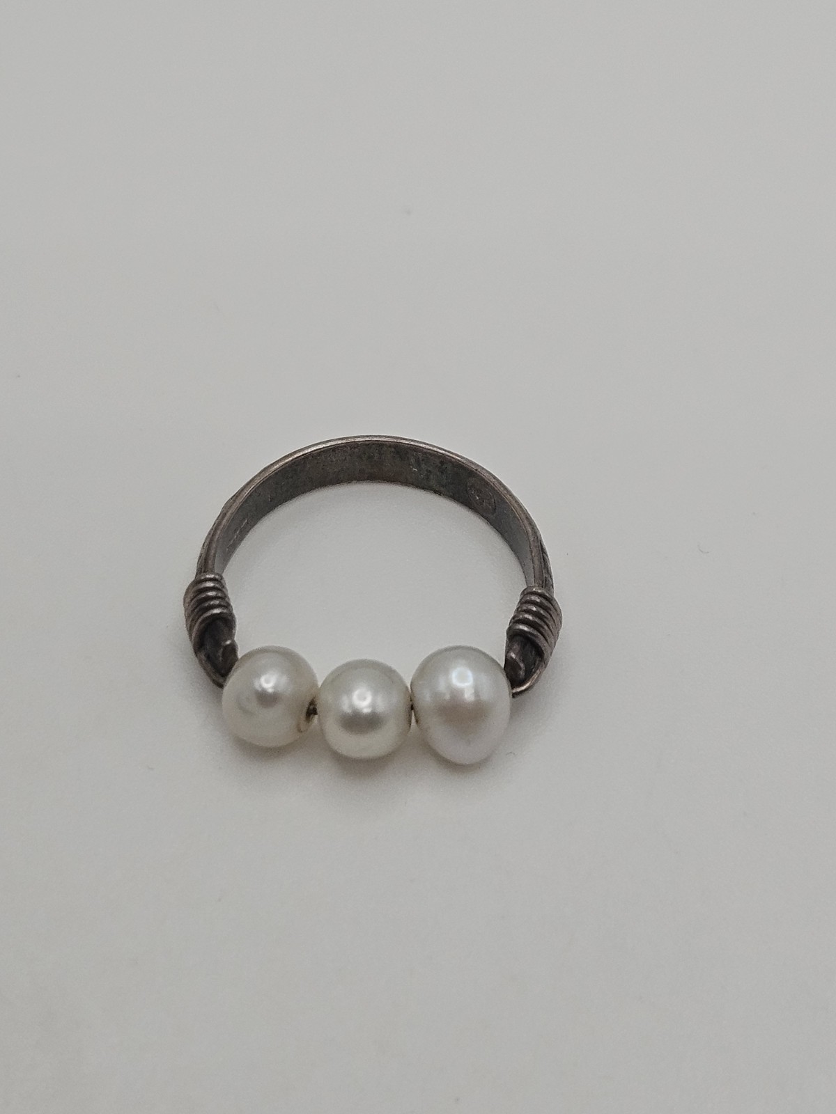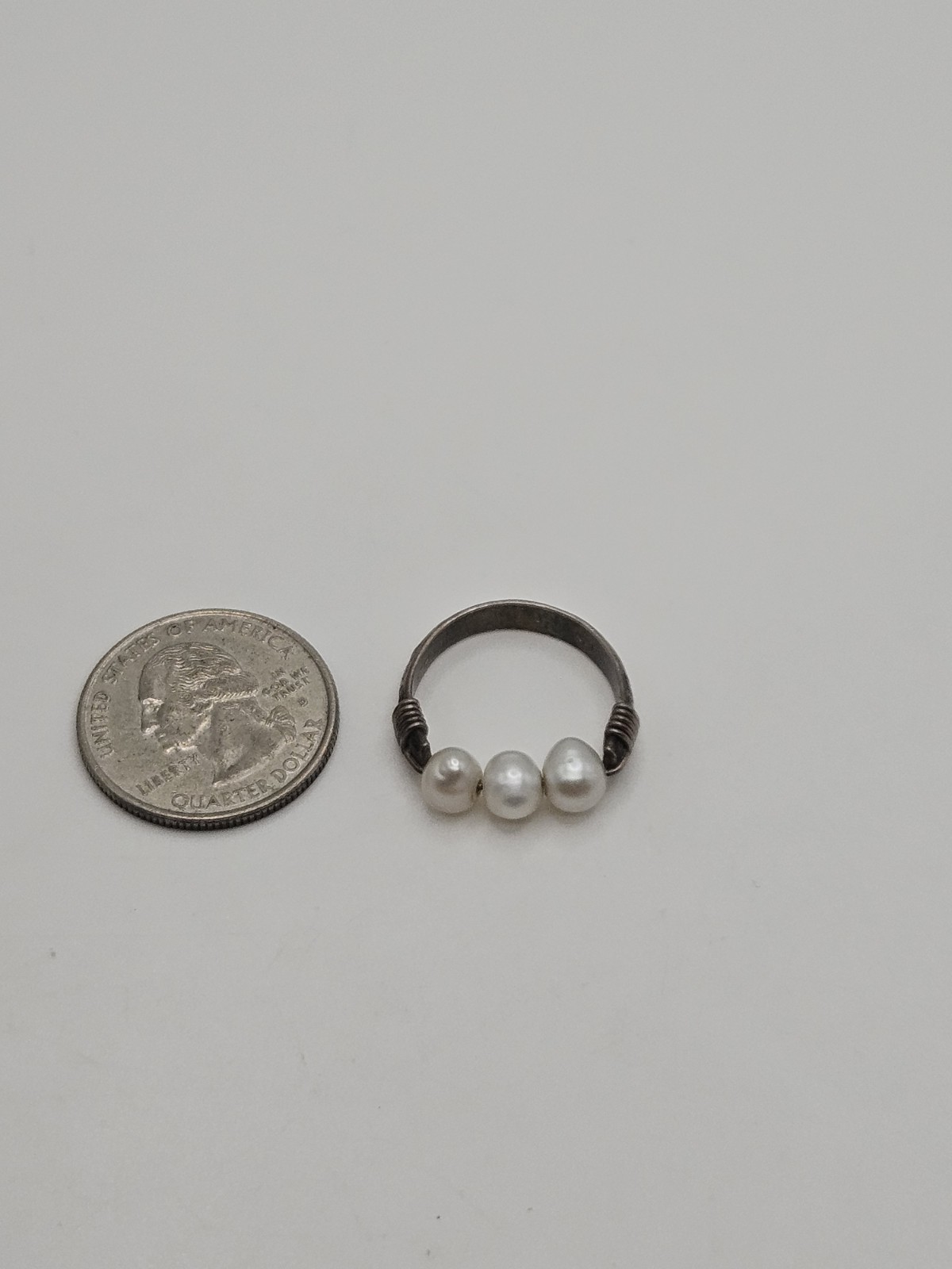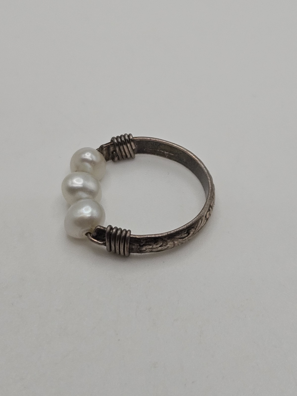 как выглядит Vintage Artisan Sterling Silver White Freshwater Pearl Band Ring Size 7 фото