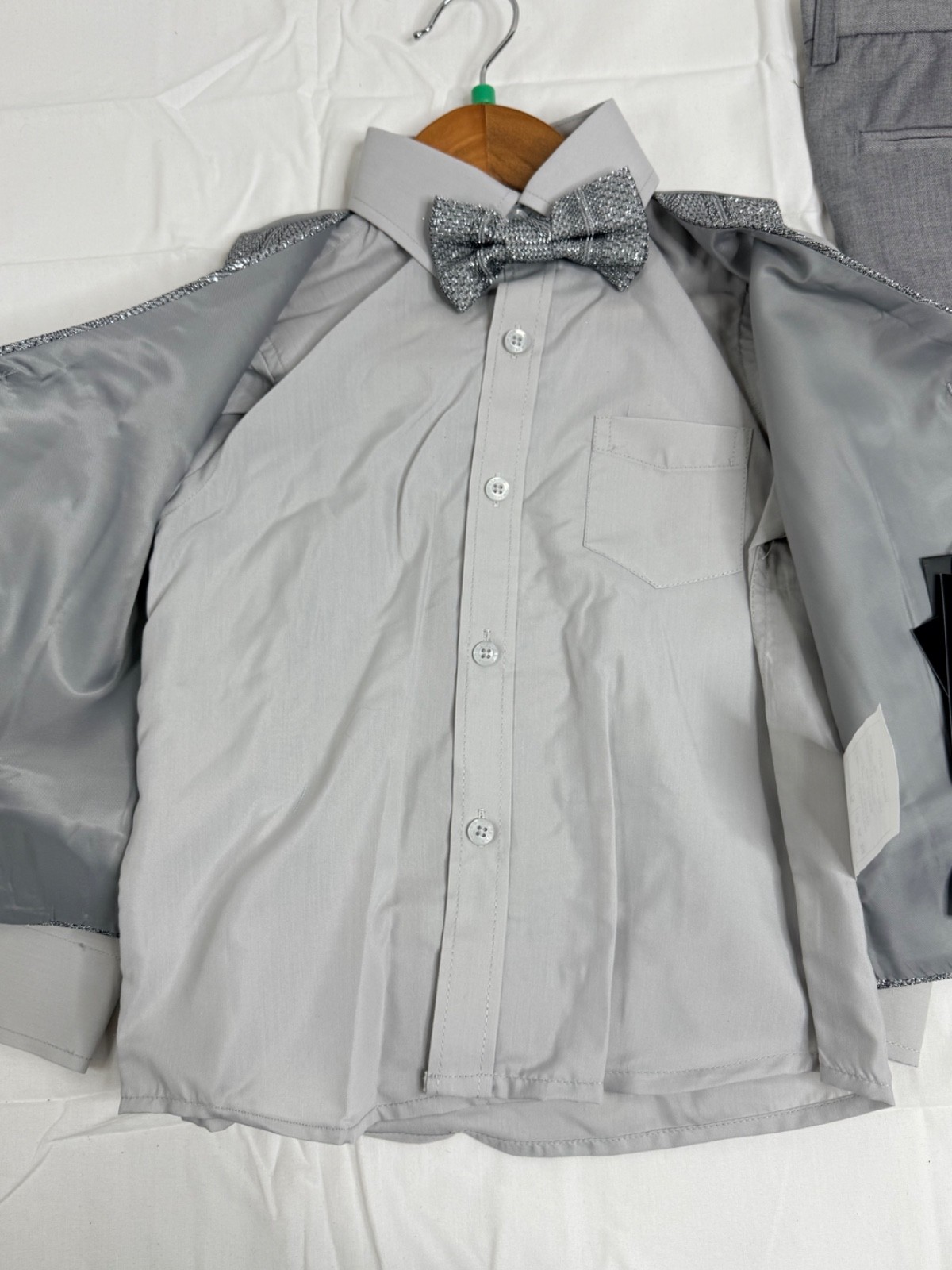 как выглядит KidsWorld of USA 4-Piece Sz 5 Formal Suit Set Boys Gray Silver Bow Tie NWT фото