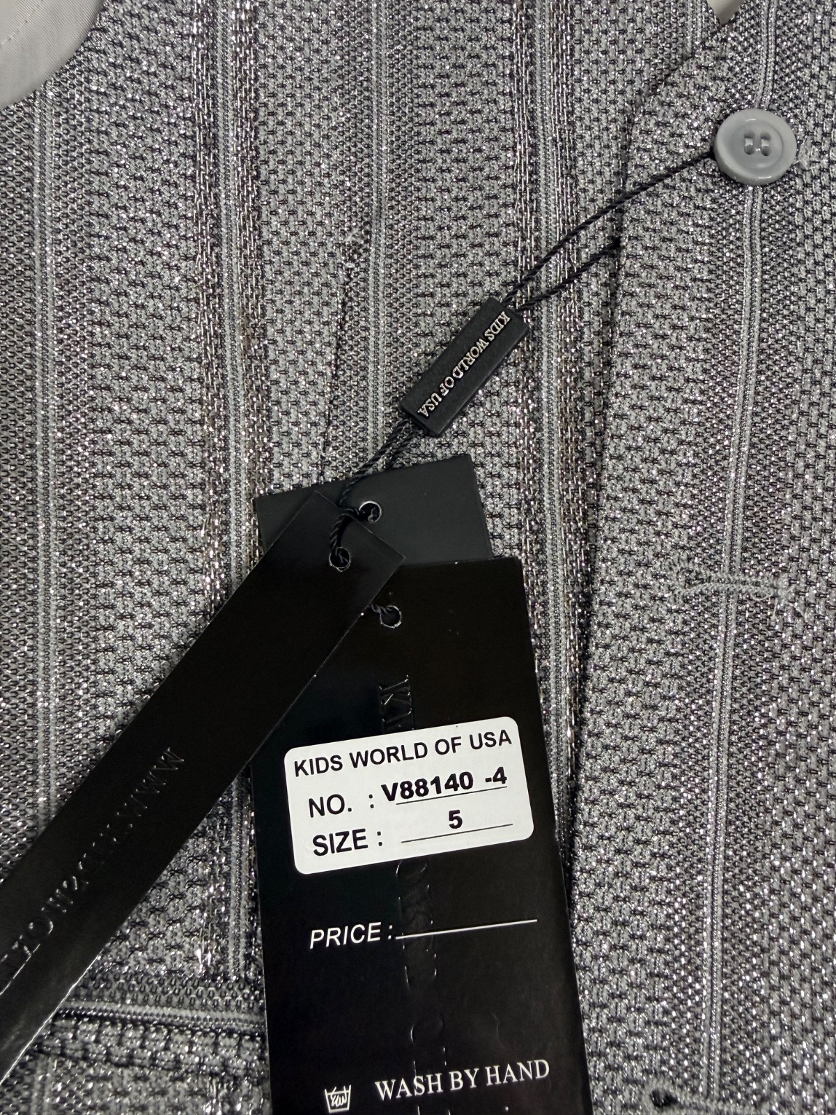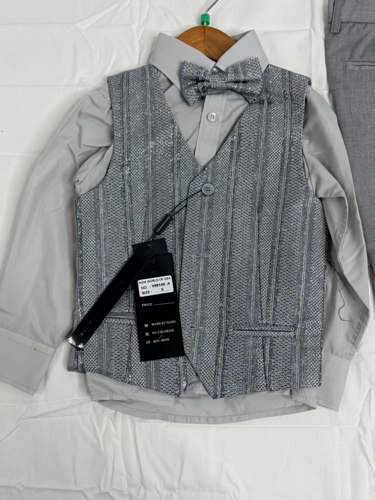 KidsWorld of USA 4-Piece Sz 5 Formal Suit Set Boys Gray Silver Bow Tie NWT