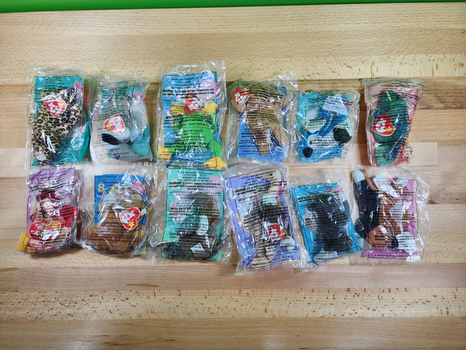 1999 Complete Set of 12 McDonald's TY Beanie Babies New In Bags Happy Meal