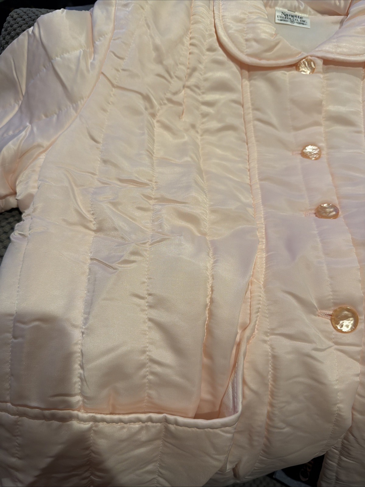 как выглядит Vintage 1950s NANETTE Pink Quilted Bed Medium Jacket фото