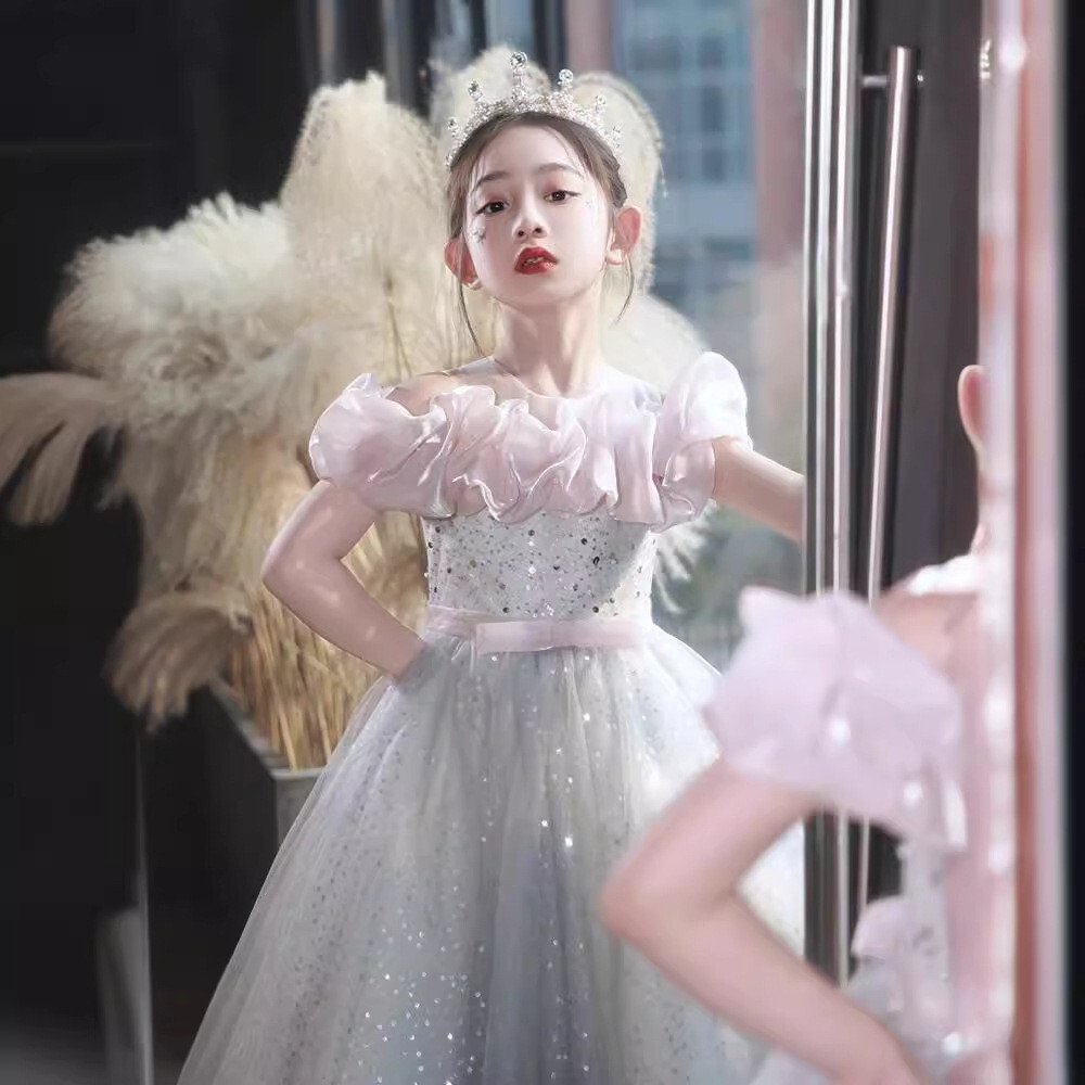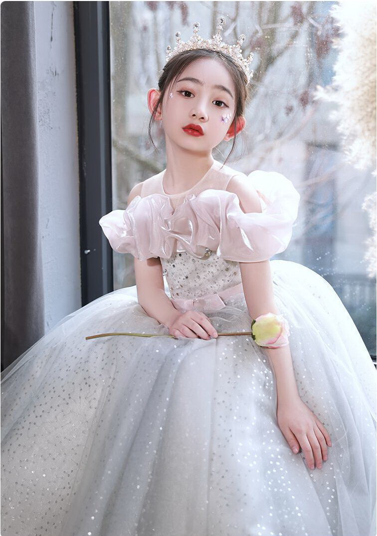 как выглядит Kids Girl Ball Gown Long dress Blin Princess Show Mesh Party Wedding Frock 05791 фото