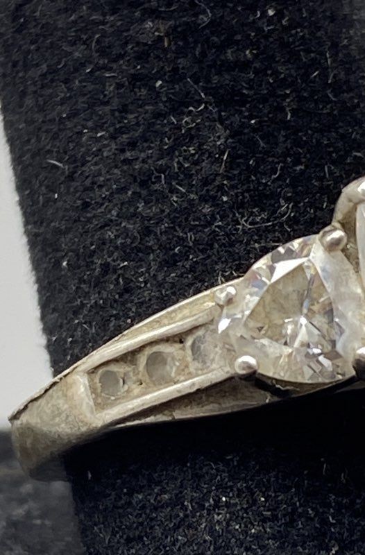 925 Sterling Silver Triple Cubic Zirconia Size 8 Ring 4.4g