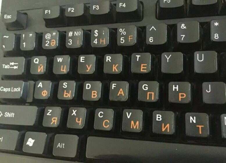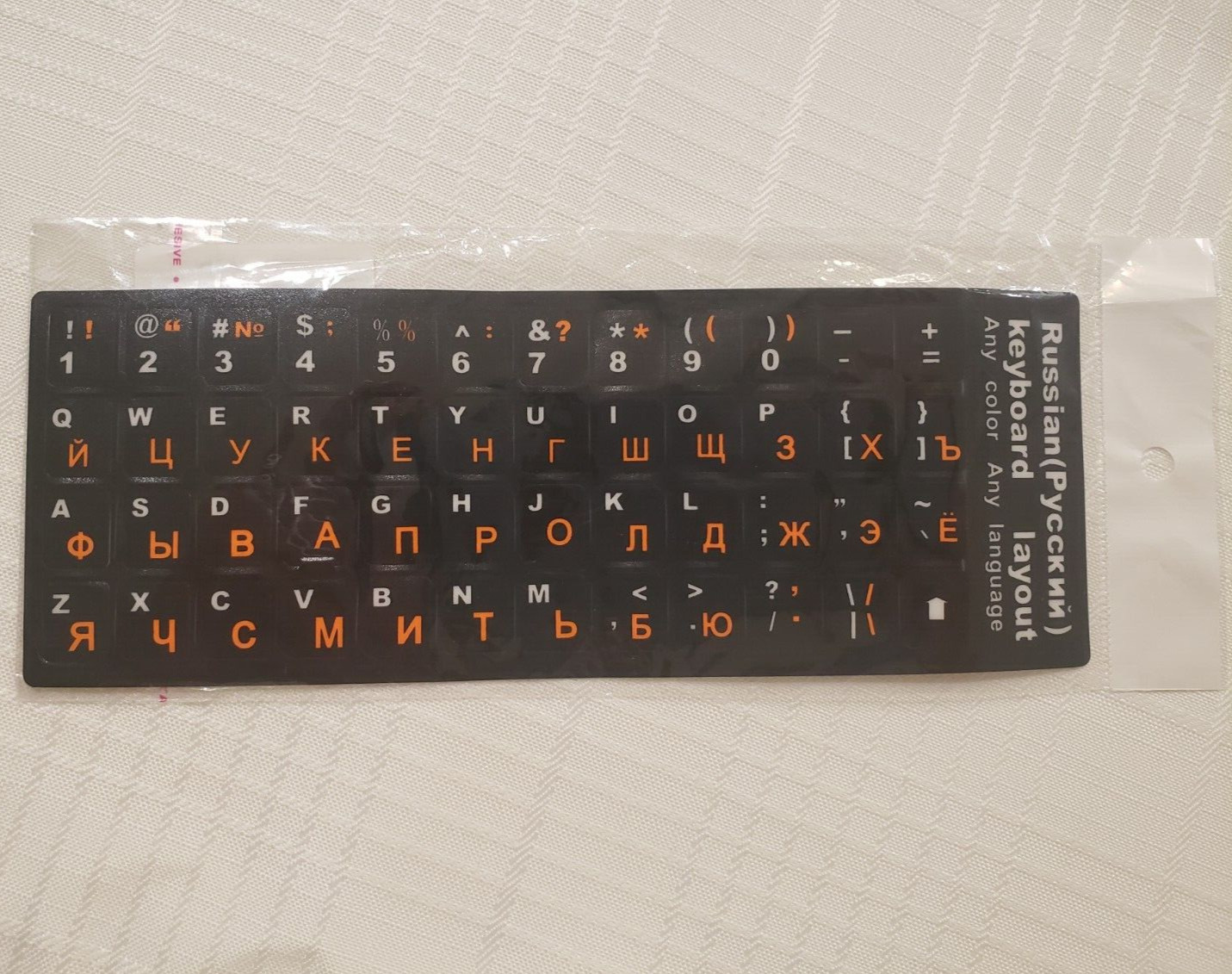 Russian Standard Keyboard Layout Stickers Letters Orange White Sealed