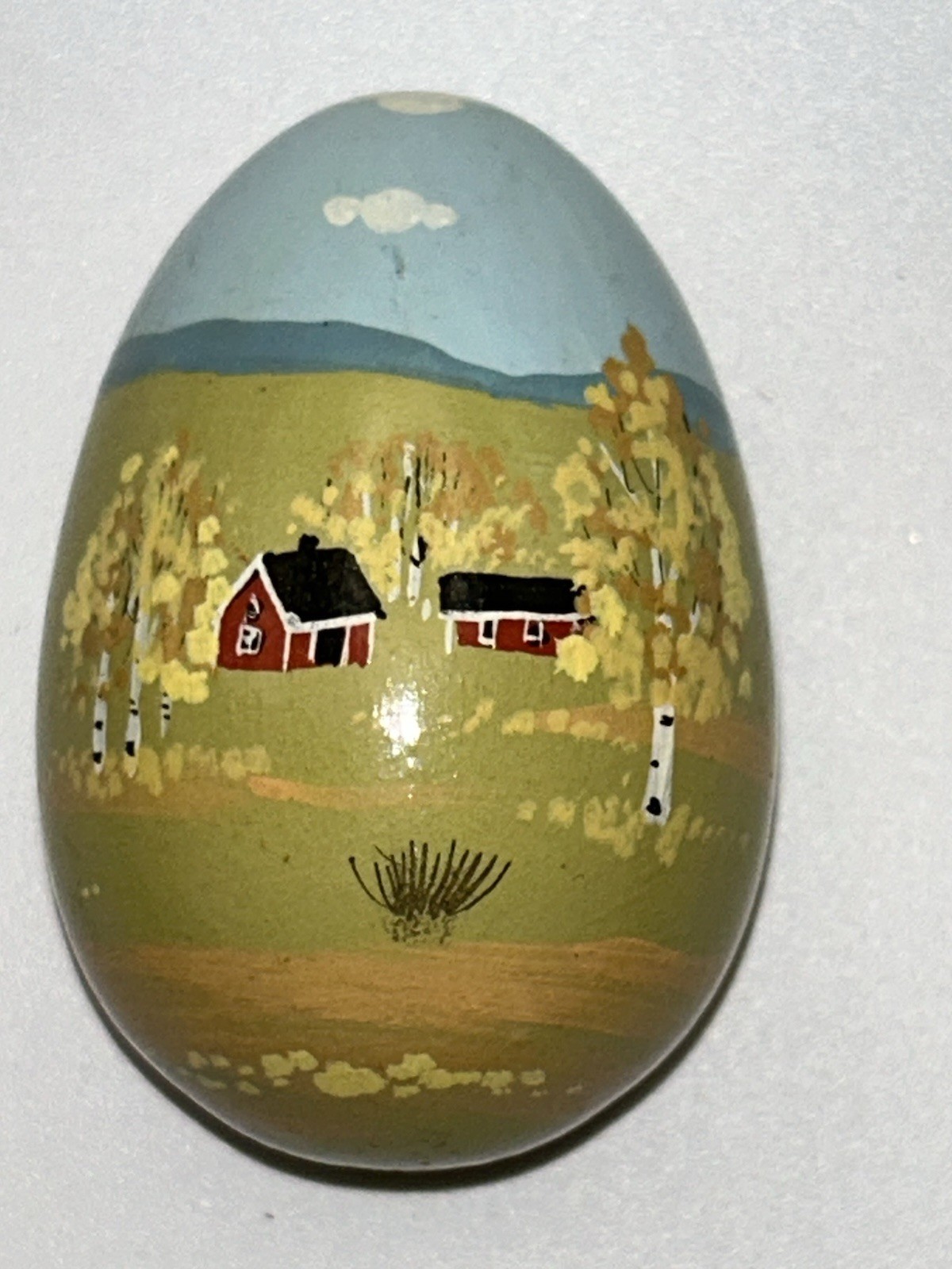 Russian Folk Art Hand Painted Wooden Easter Egg Lacquered Farm Scene NO STAND