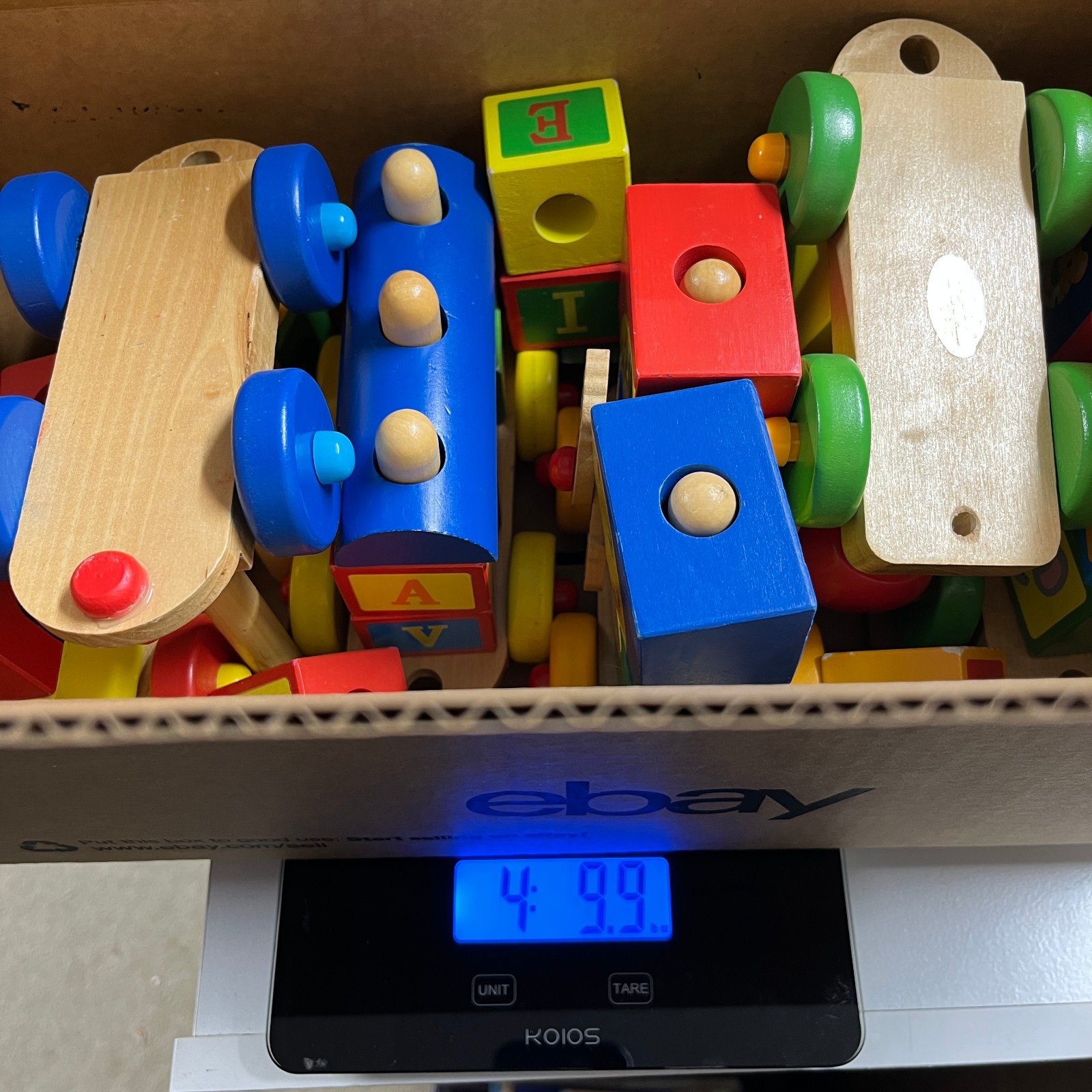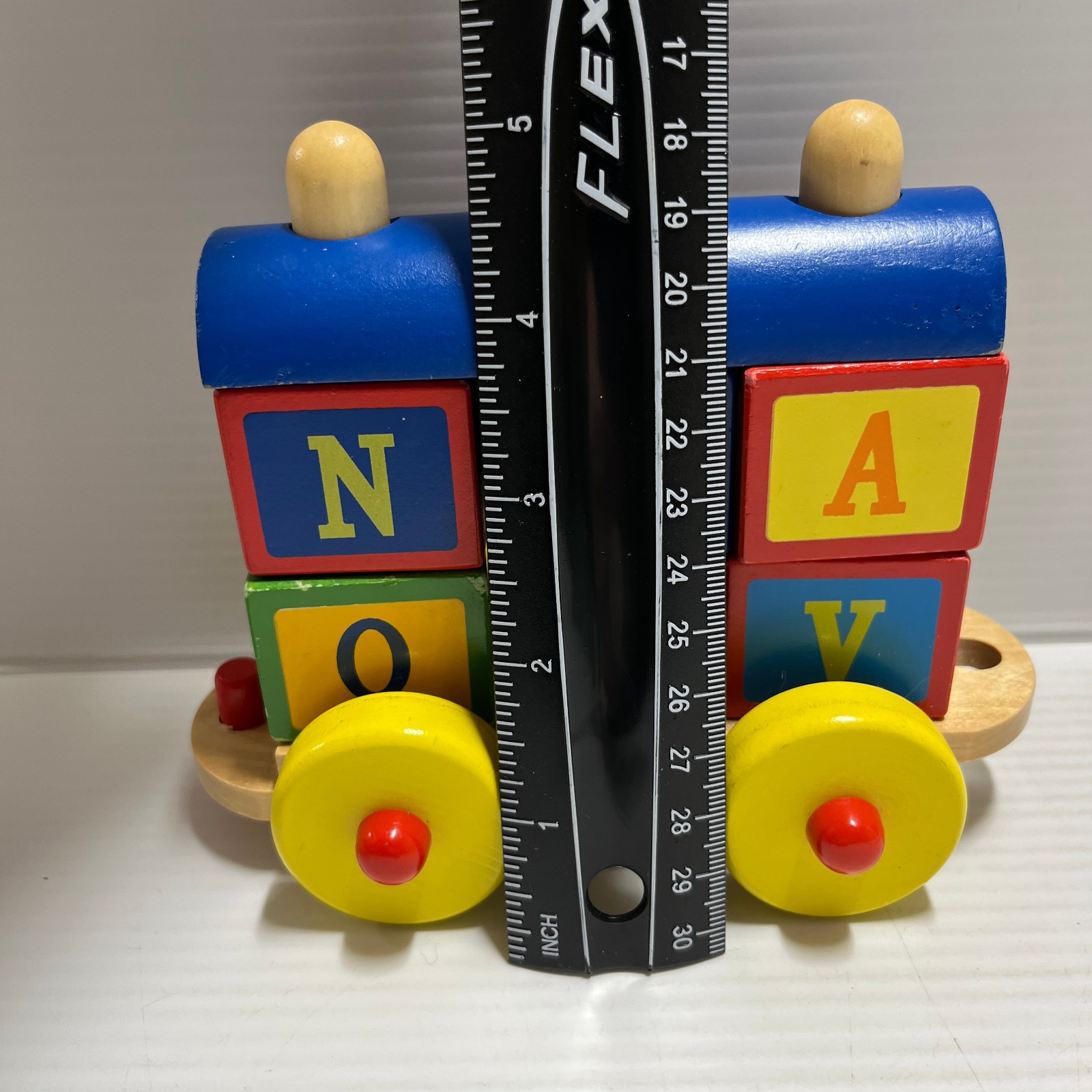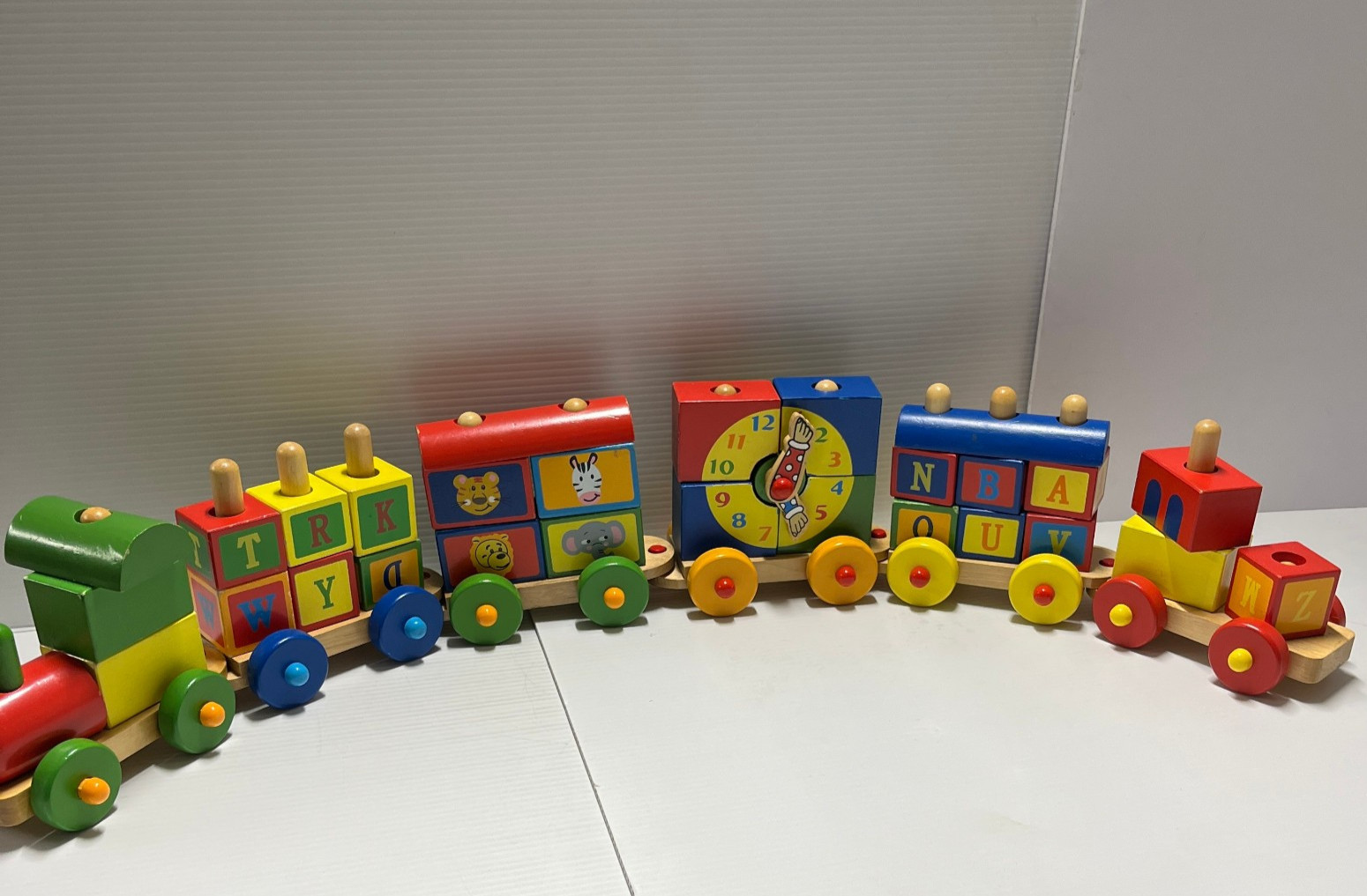как выглядит Wooden 6Pc Toy Train Set 30 Blocks Numbers Letters Clock Stacking Build 32" фото