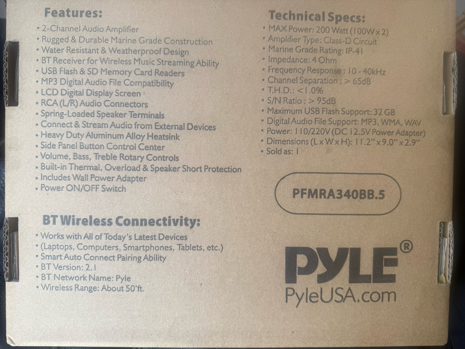 как выглядит Pyle 2-Channel 200W Bluetooth Weather-Resistant Marine Amplifier фото