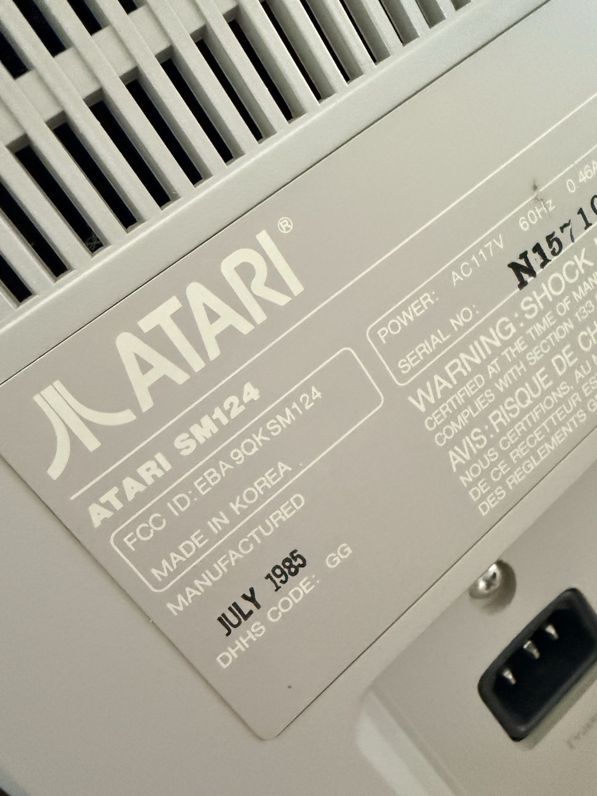 ATARI SM124 Monitor July 1985 Power Tested NO POWER CORD Attached 13 Pin DIN