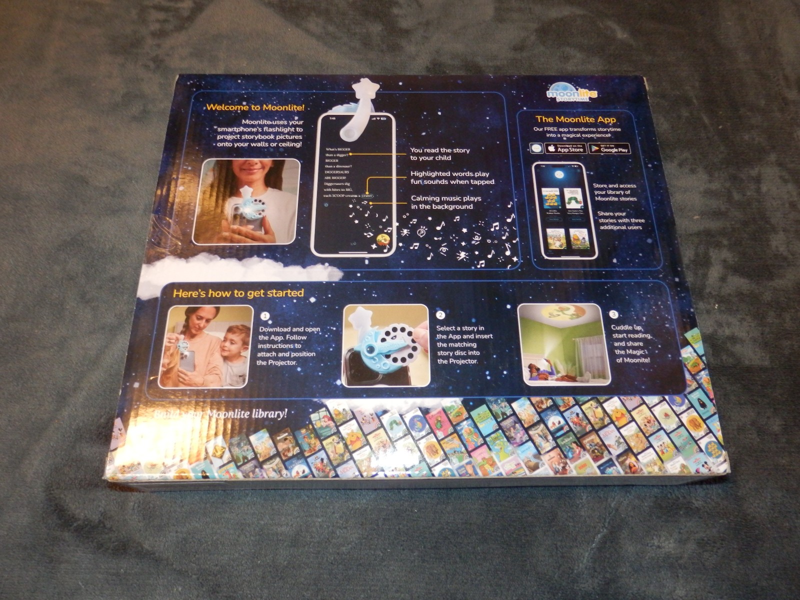 MOONLITE STORYTIME PROJECTOR AND APP- 3 PICTURE DISC'S INCLUDED NEW STILL SEALED