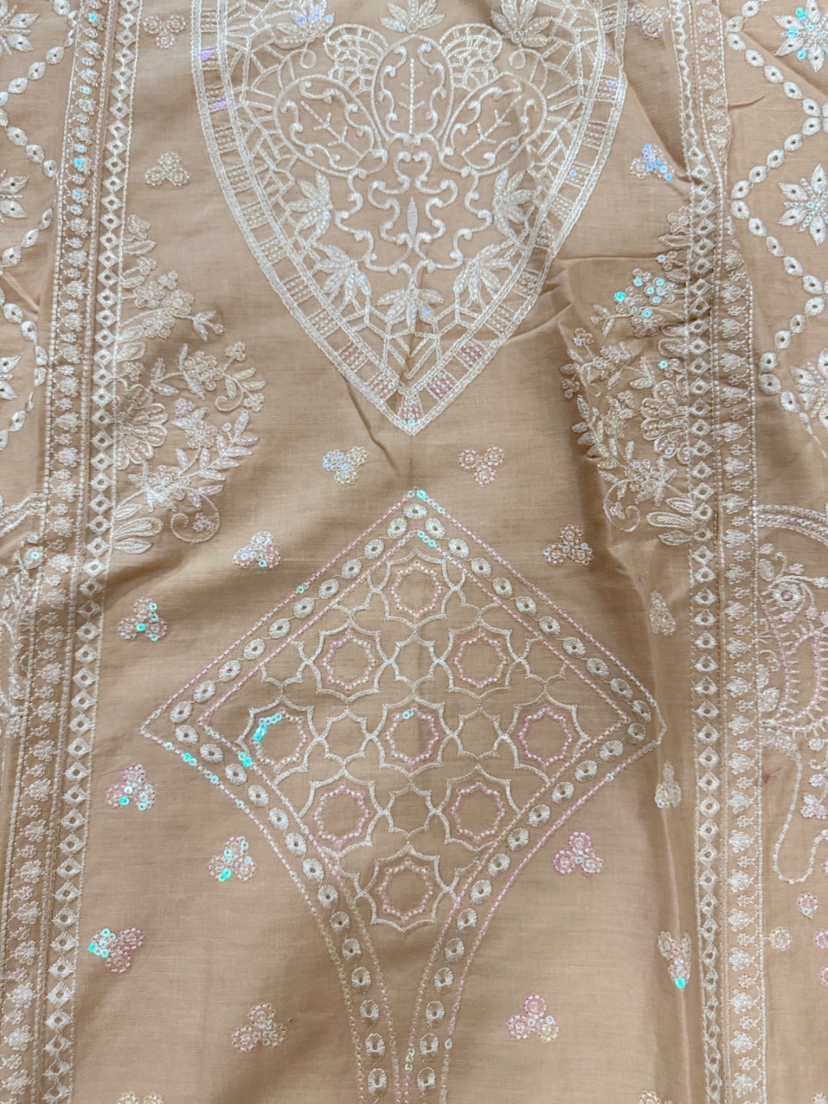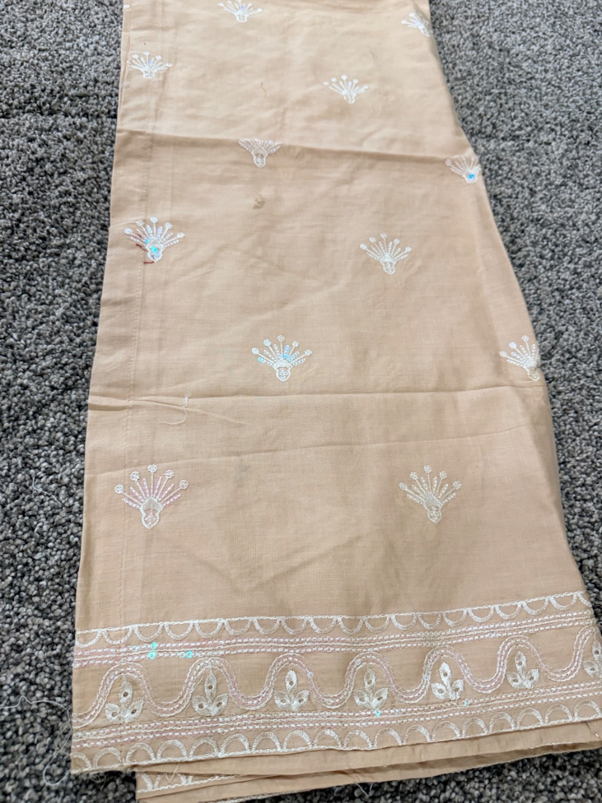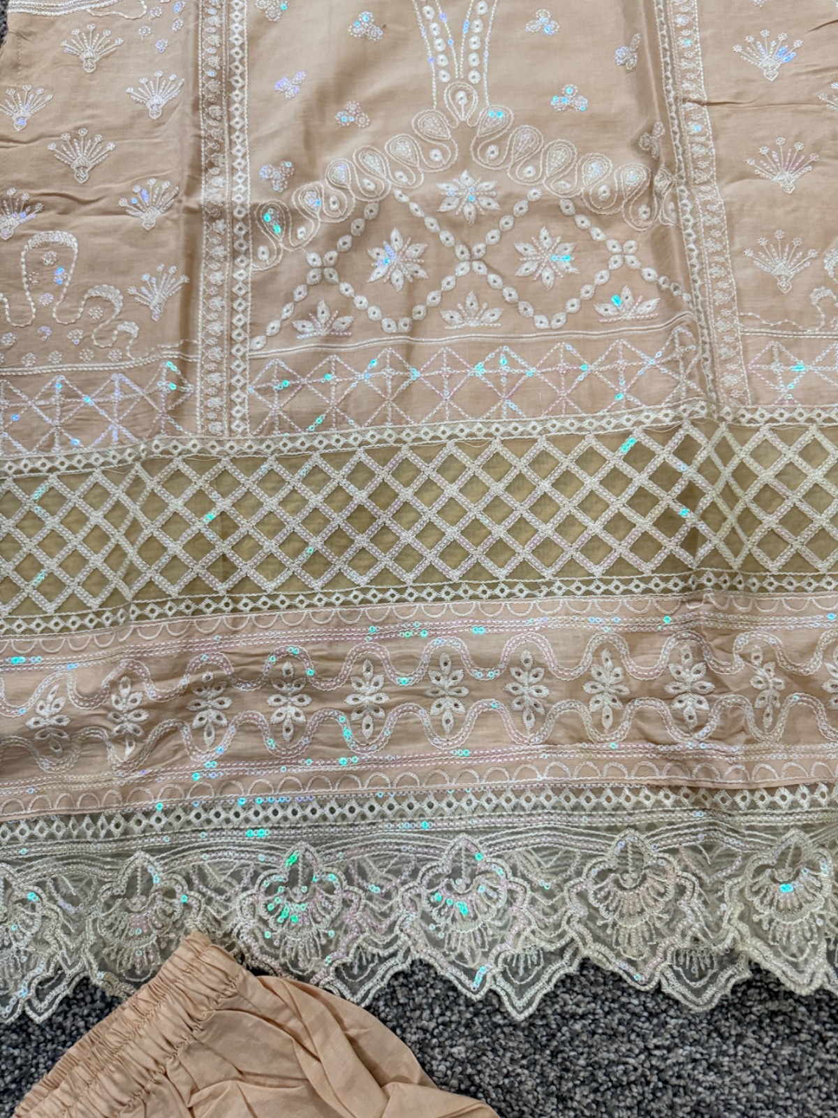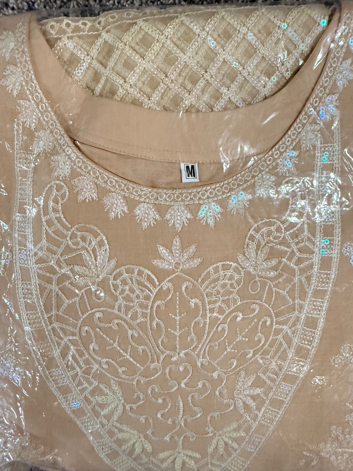 Women s 3-Piece Embroidered Salwar Kameez Suit Tunic Pants Dupatta Peach Set M
