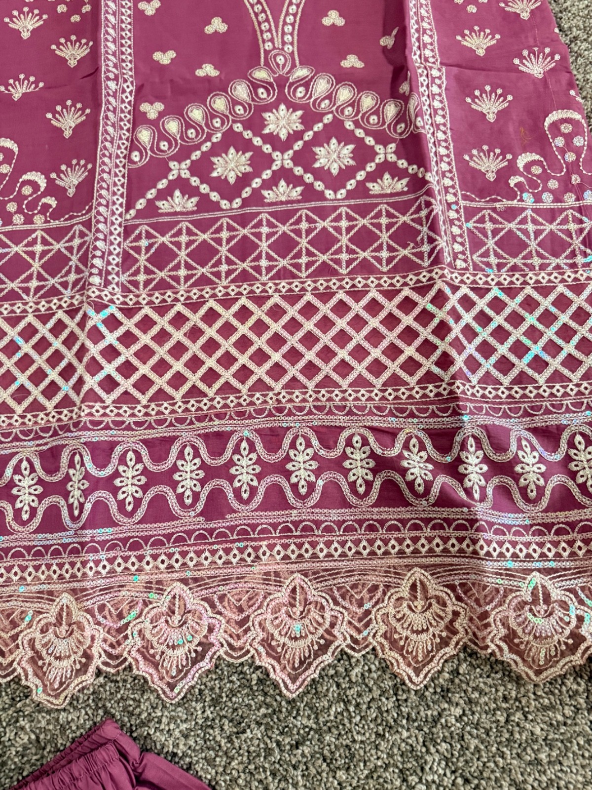 как выглядит Women s 3pc Embroidered Salwar Kameez Suit Tunic Pants Dupatta Pink/White Set M фото