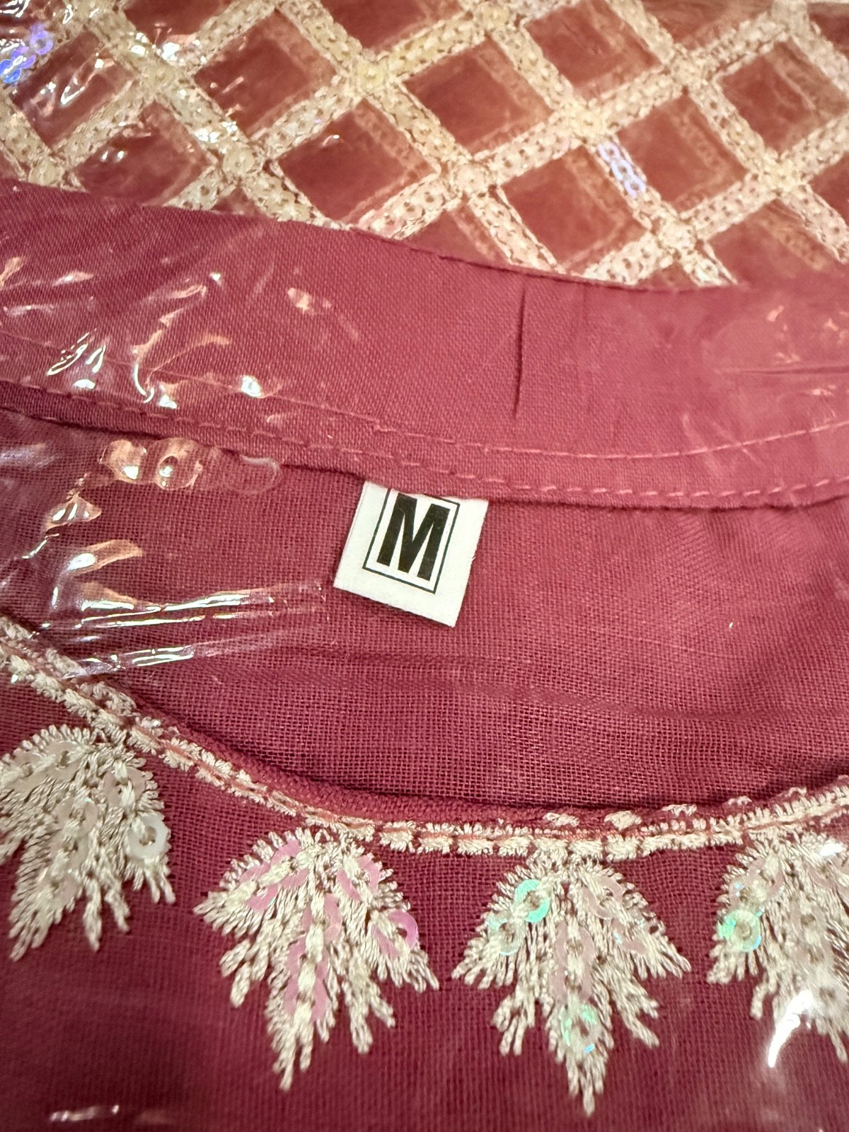 Women s 3pc Embroidered Salwar Kameez Suit Tunic Pants Dupatta Pink/White Set M