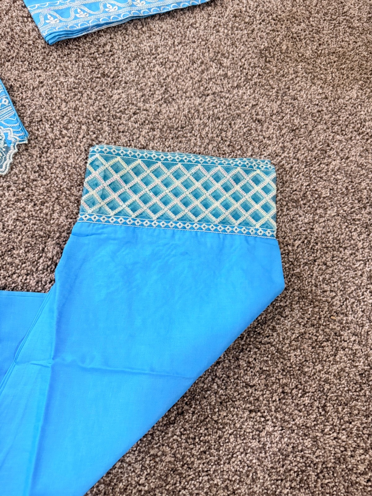 как выглядит Women s 3pc Embroidered Salwar Kameez Suit Tunic Pants Dupatta BlueWhite Set M фото