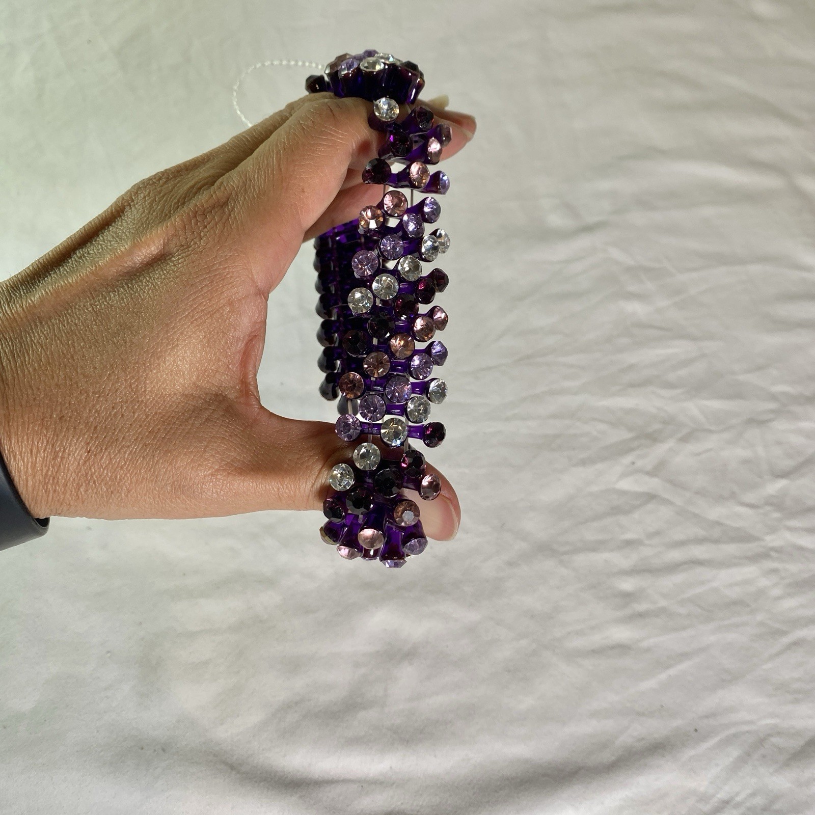 как выглядит rhinestone bracelet womens stretch purple bling фото