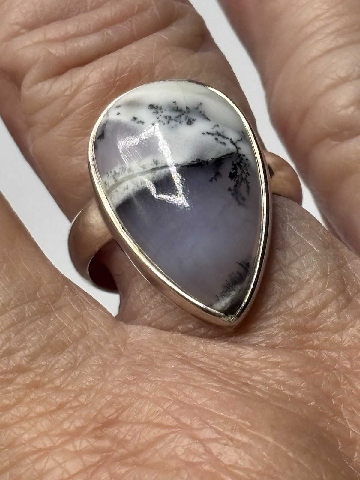 как выглядит Natural Dendritic Opal Gemstone Ring 925 Sterling Silver Handmade Ring Size 8 фото