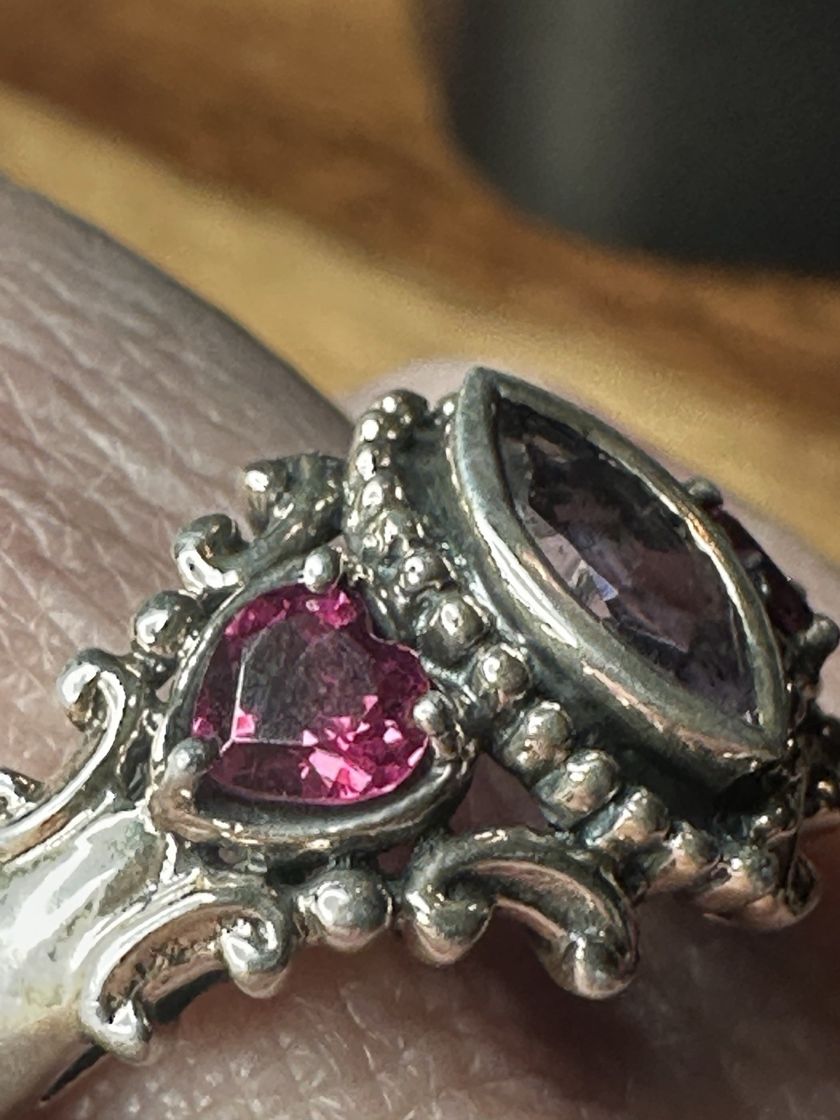 как выглядит 925 Sterling Silver Triple Amethyst Gemstone Ring size 8 фото