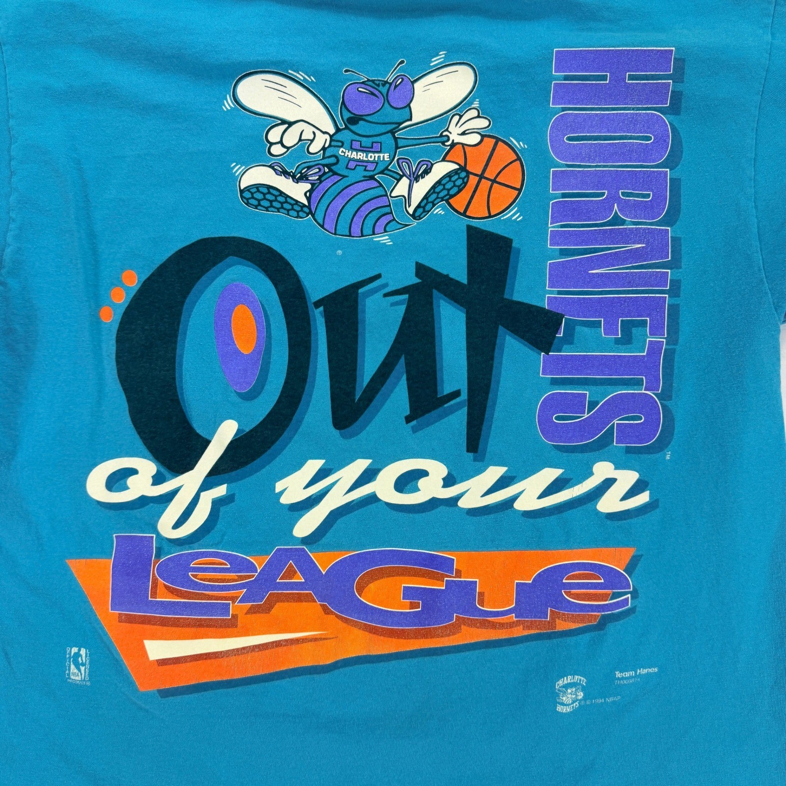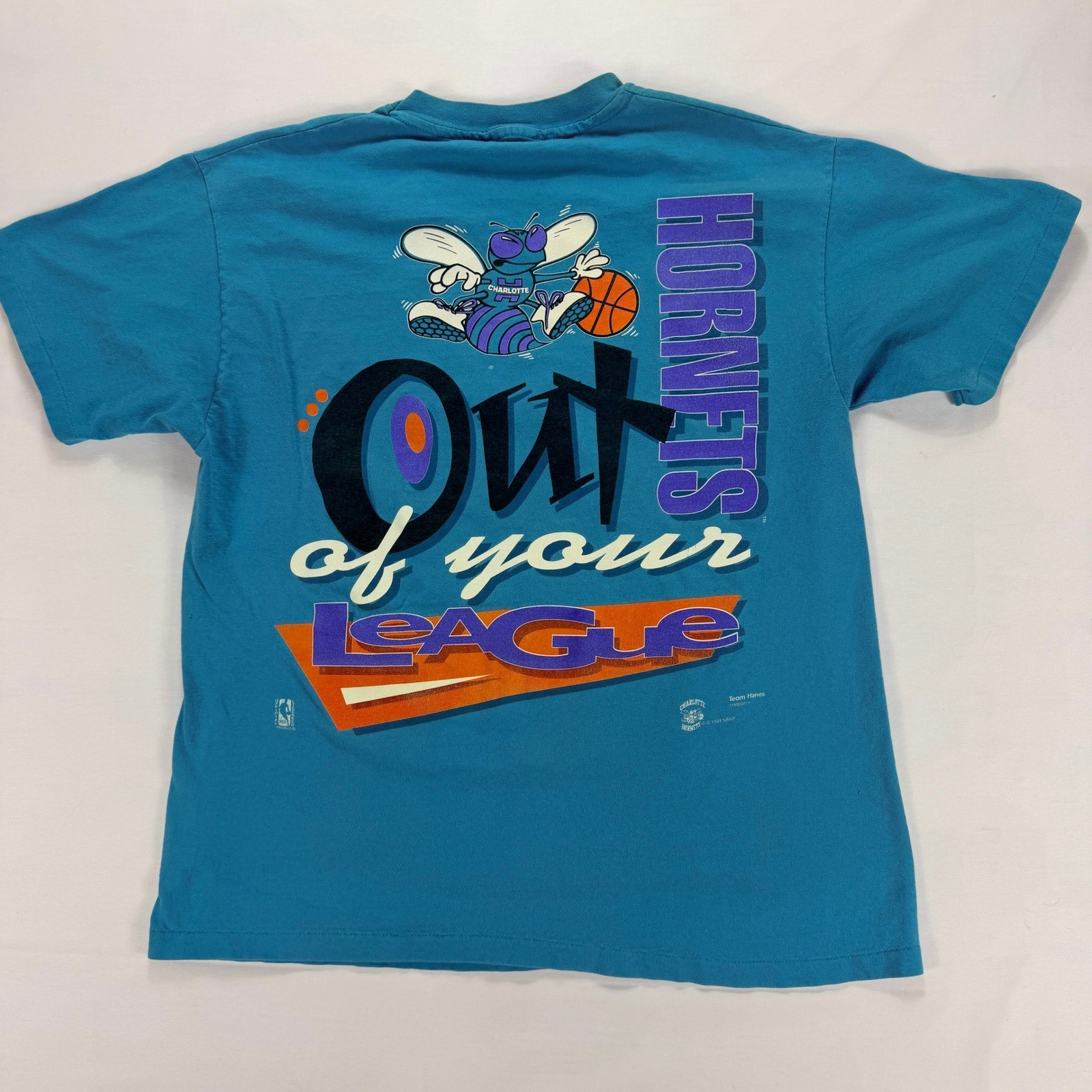 Vintage Charlotte Hornets T Shirt 1994 Hanes Single Stitch Teal NBA M