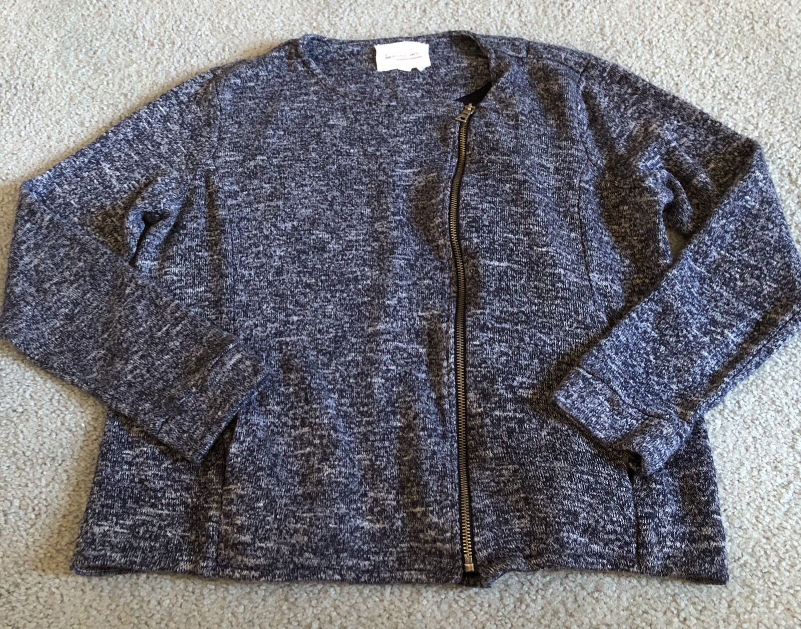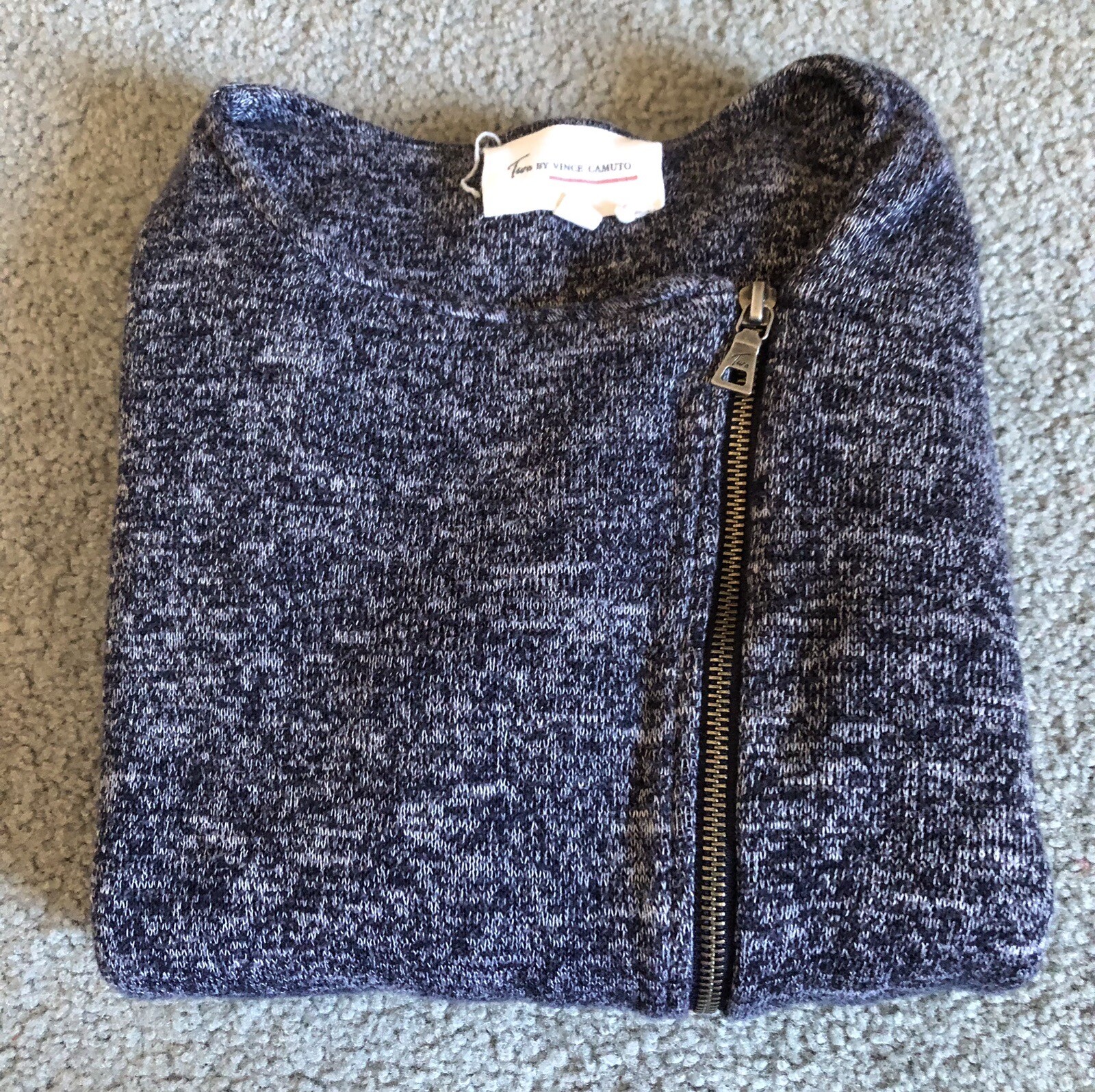 как выглядит Two By Vince CAMUTO Full Zip Sweater Sz M Blue Gray Knit Pockets Career Modern фото