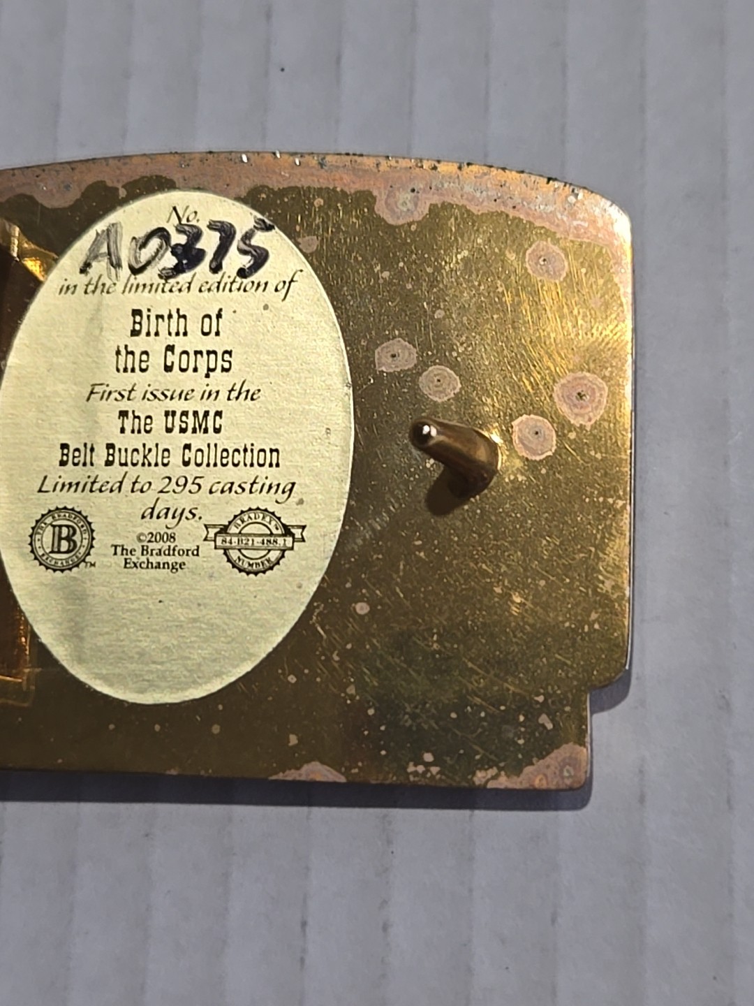 2008 USMC FOUNDED IN 1775 BELT BUCKLE BRADFORD EXCHANGE MARINE CORPS