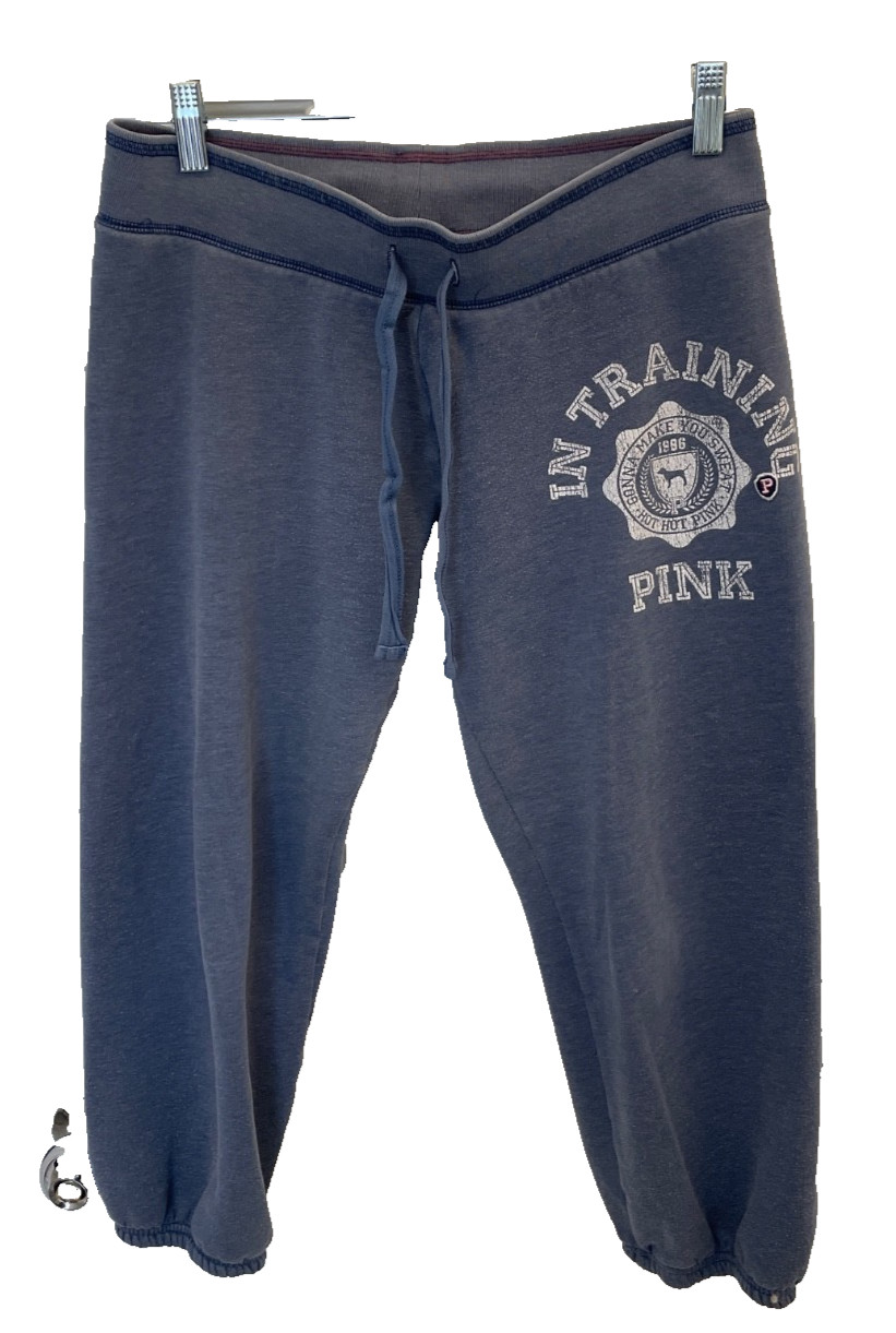 VTG Y2K Victorias Secret Pink Spellout Cropped Sweatpants Size S Blue