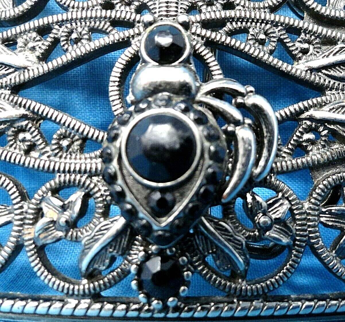 Floral Scroll Belt Buckle Ornate Open Work Flowers Vines Rhinestones Vtg .MMR261