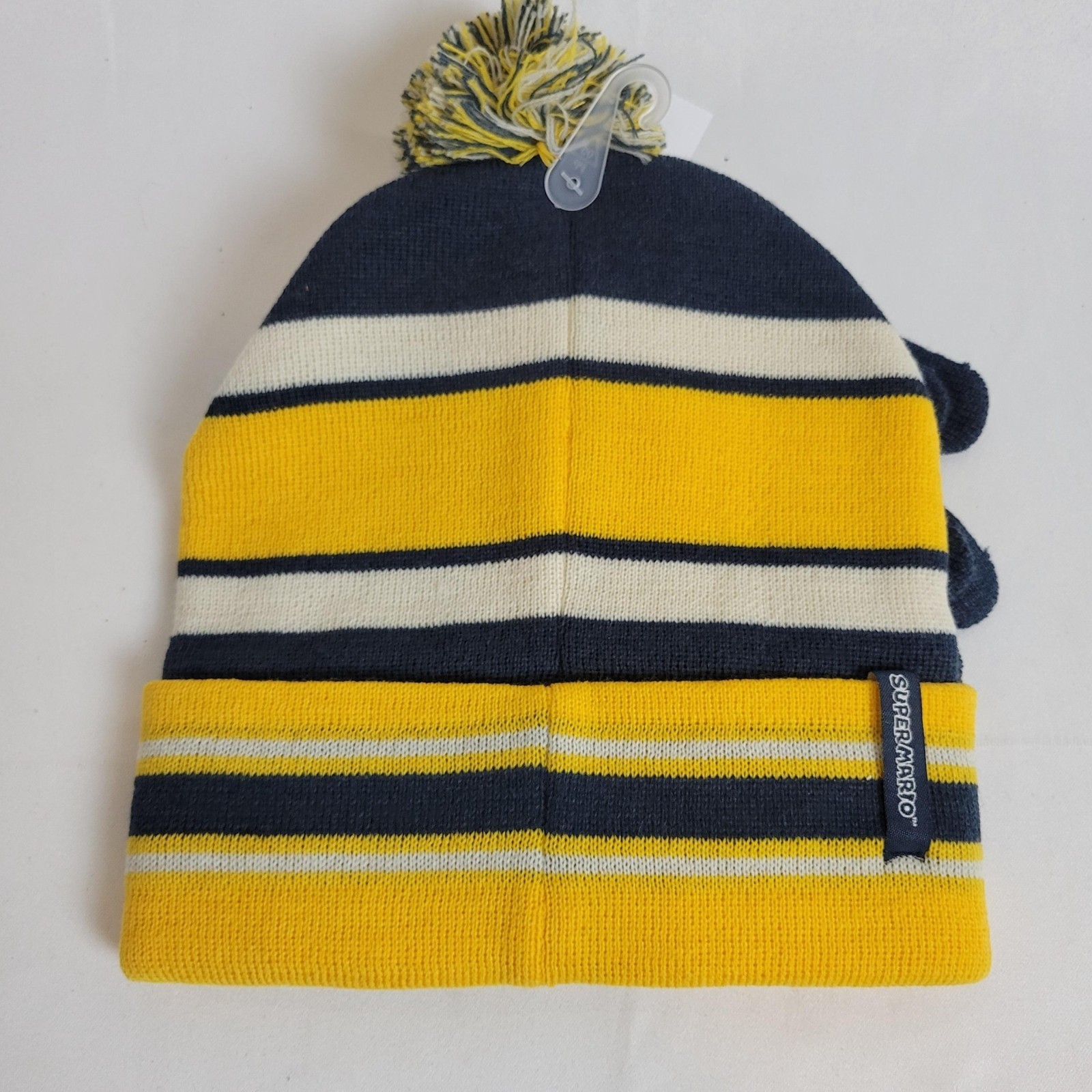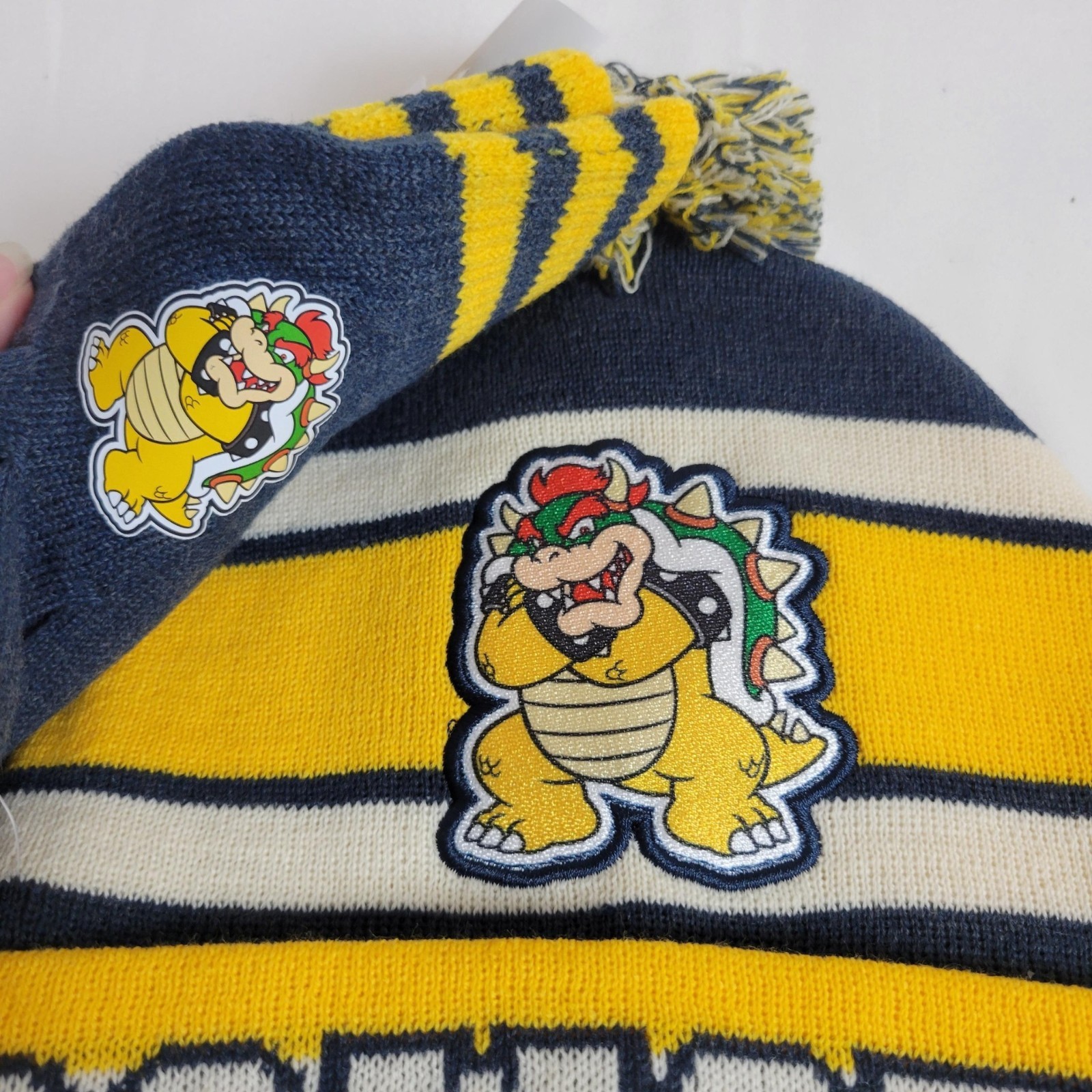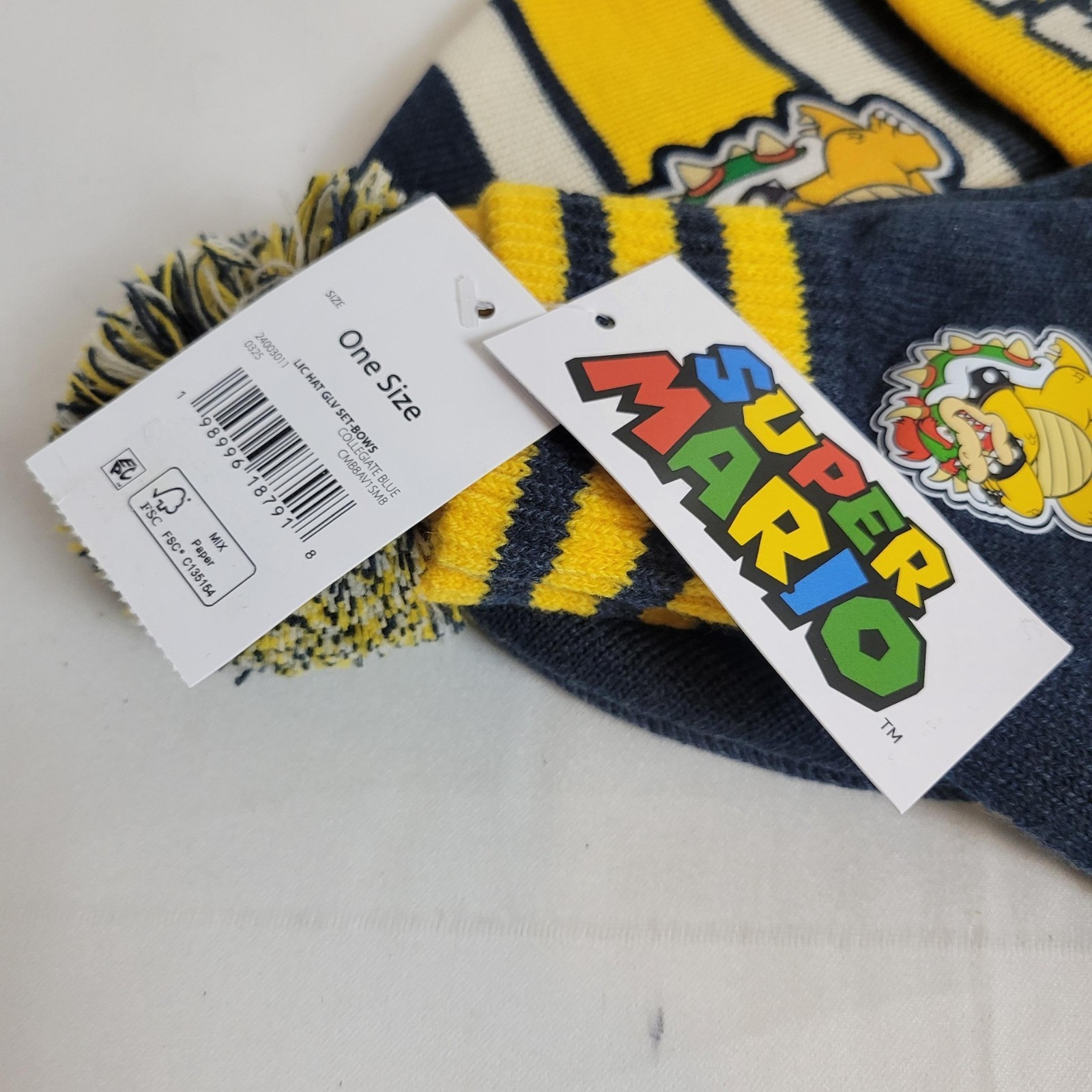 New NWT Children's Super Mario Bowser Pom Beanie Hat and Gloves Set Yellow Blue