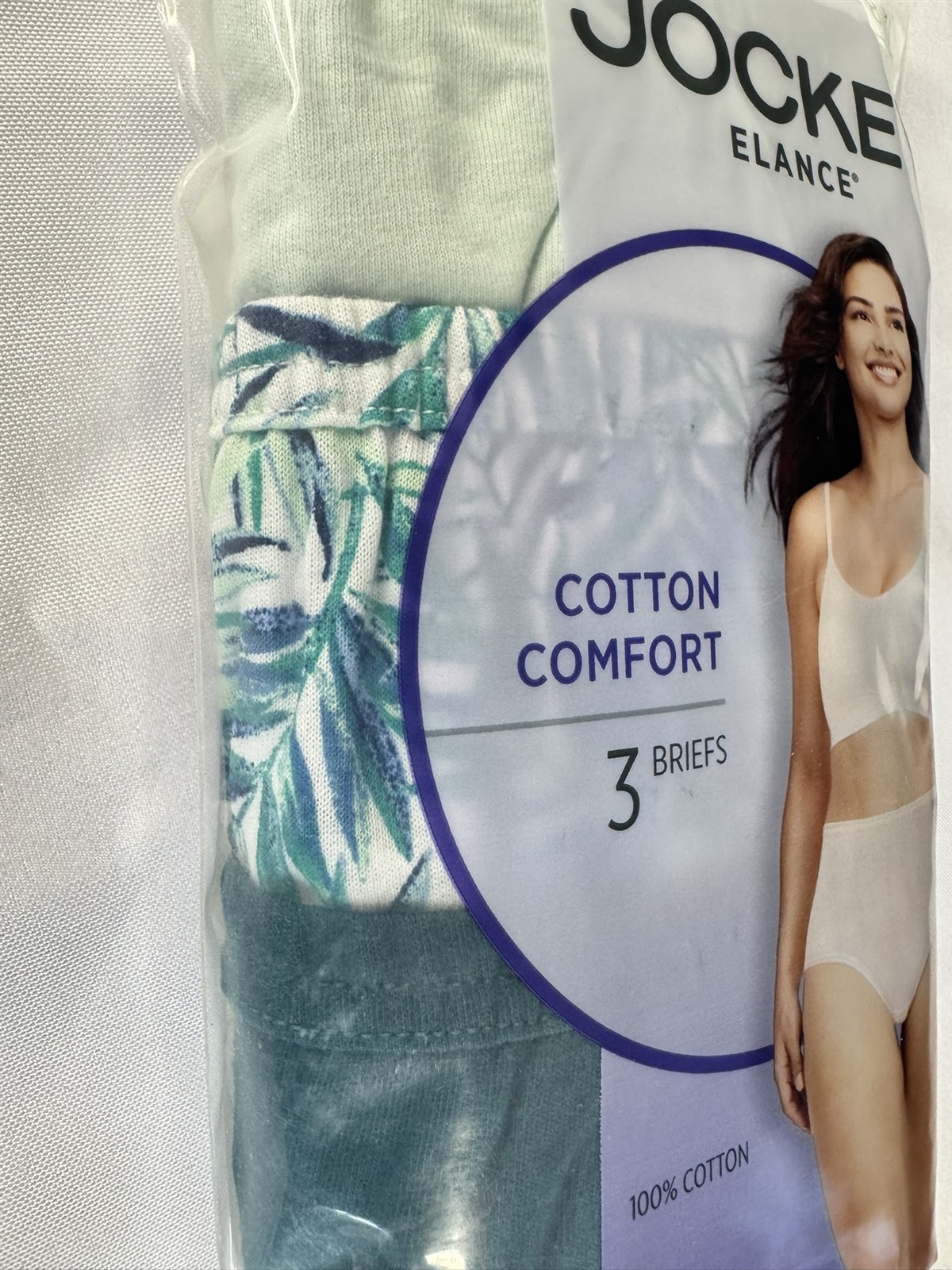 как выглядит Jockey Elance 100 Cotton Womens 8/XL Greens/Tropical Foliage Brief Panty 3-Pack фото