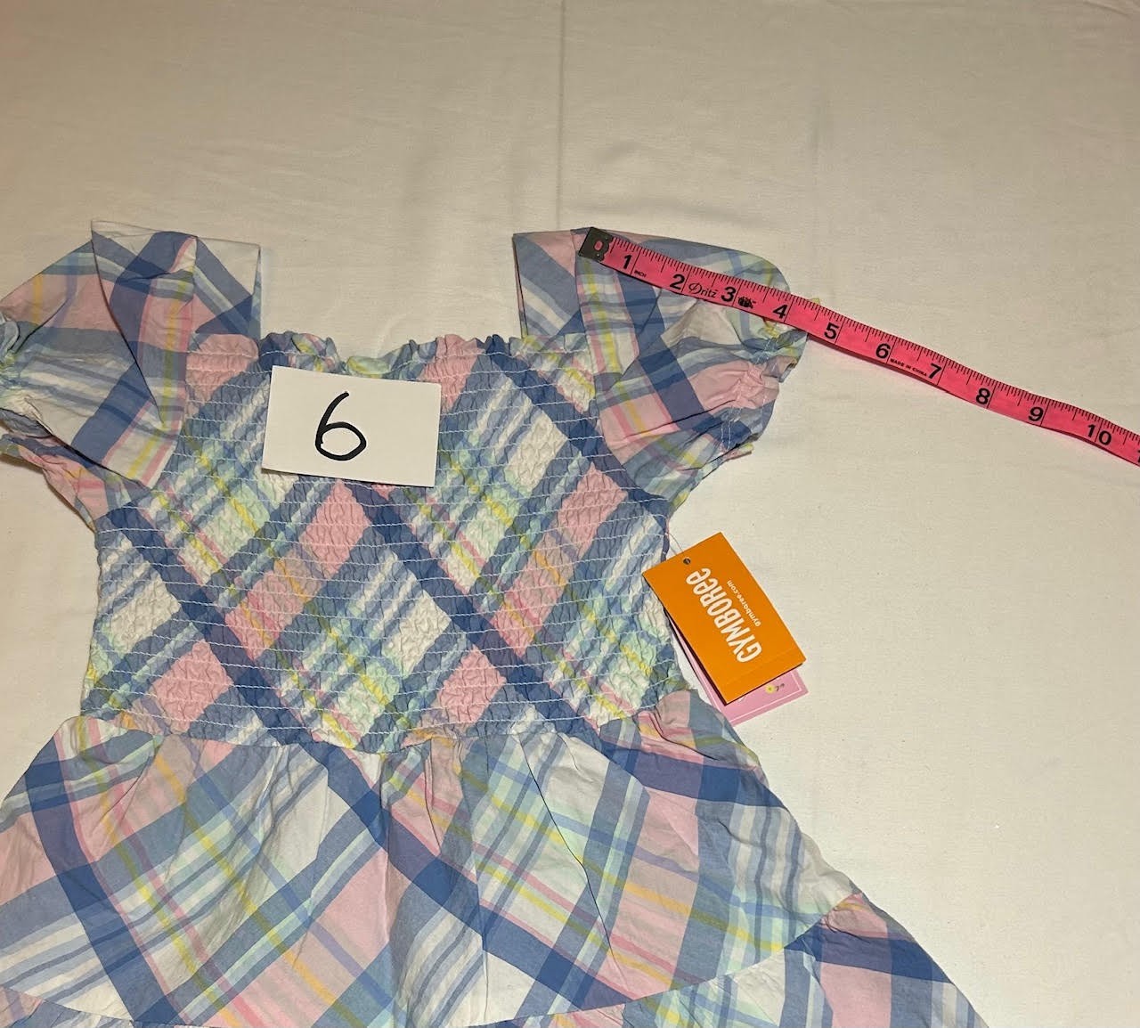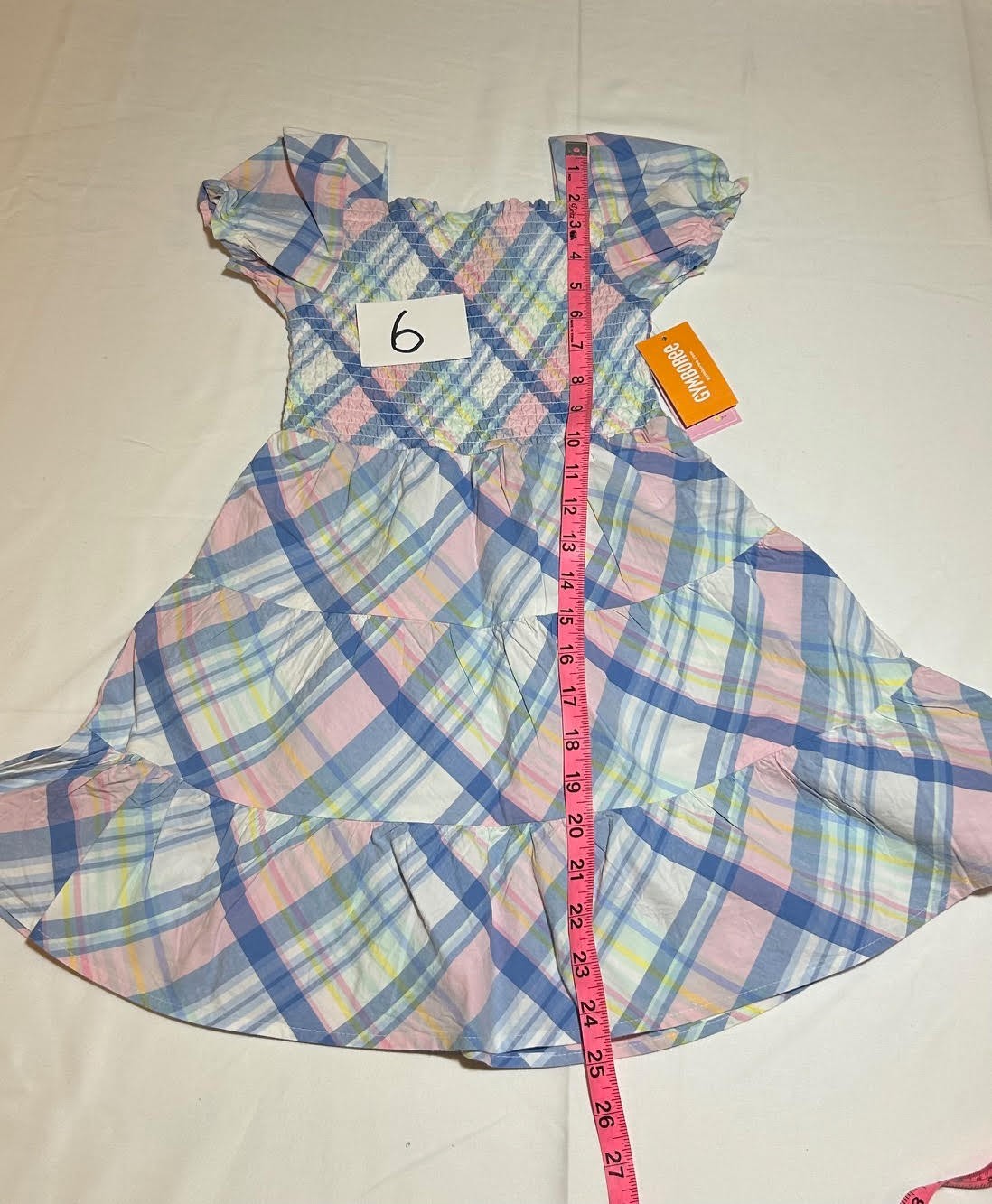 как выглядит Gymboree Girls Size 6 Pastel Plaid Short Sleeve Poplin Dress Spring Easter фото