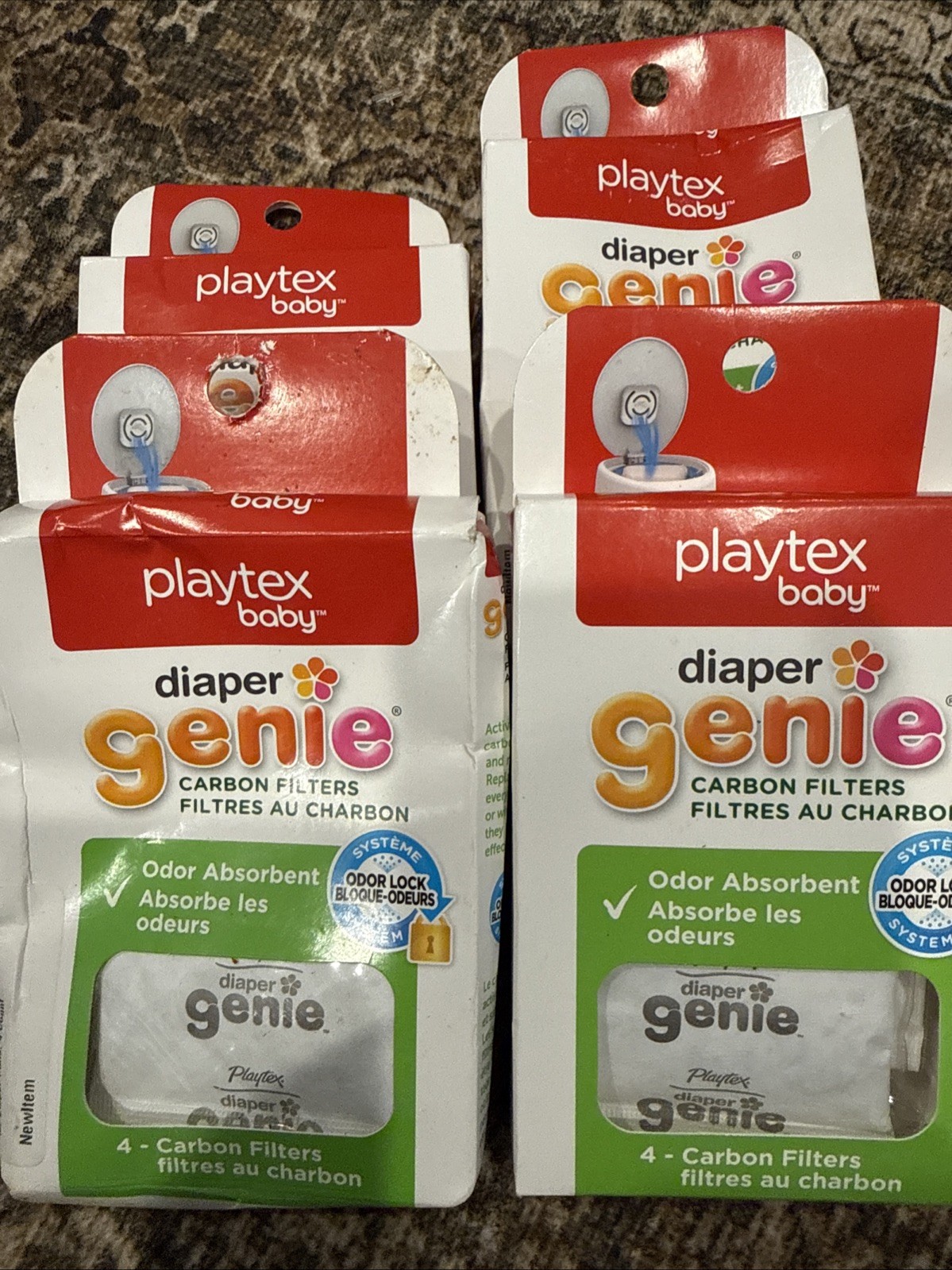 4 Packs of Diaper Genie Carbon Filters, Odor Absorbent Tray Refill, Playtex Baby