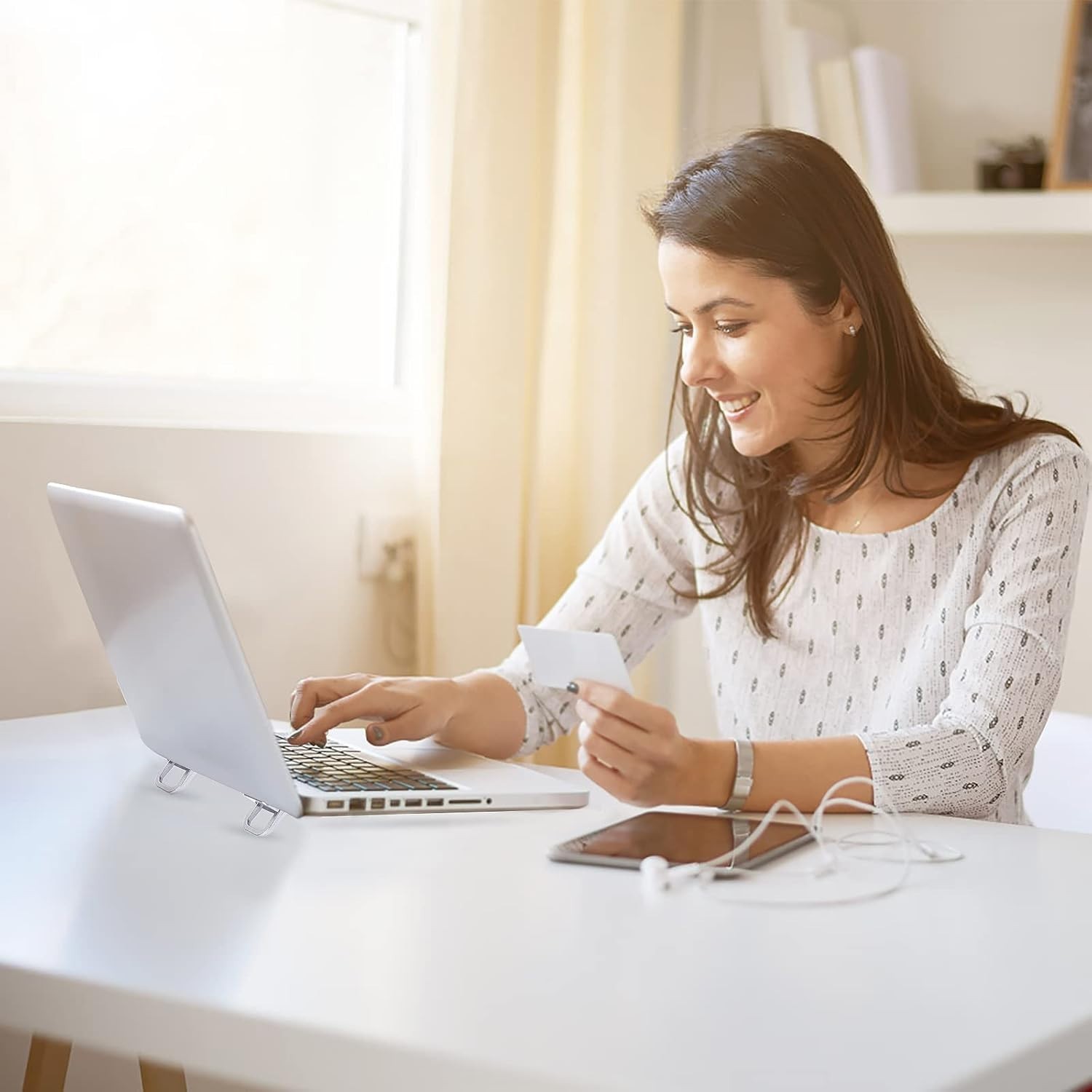 как выглядит 2PCS Portable Ergonomic Laptop Stand - Invisible Self-Adhesive Riser for Desks фото