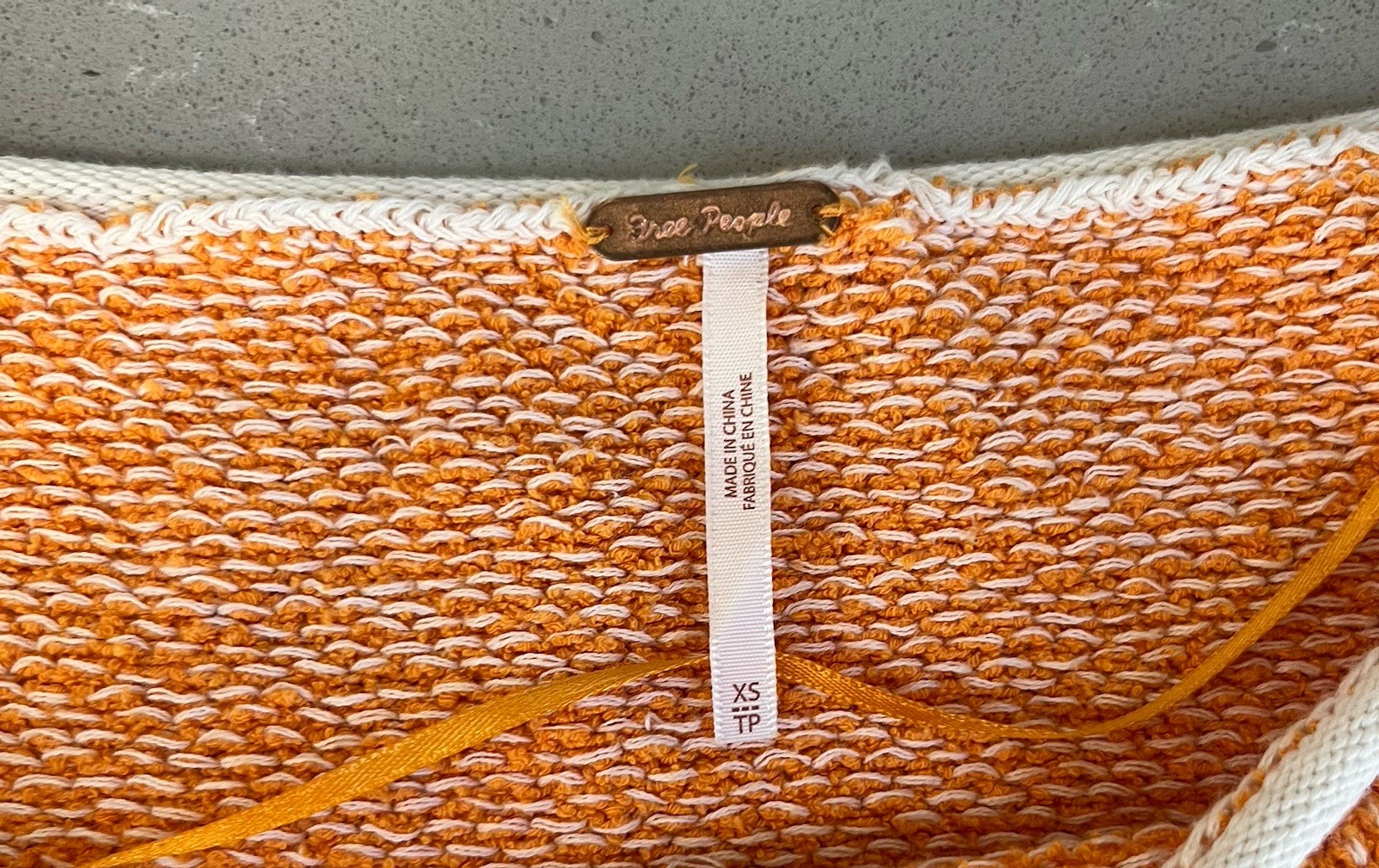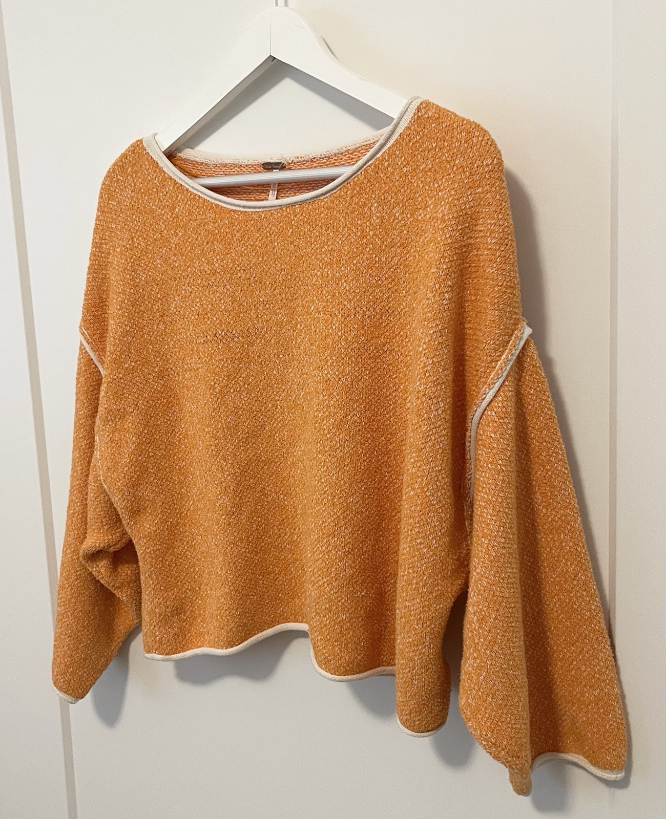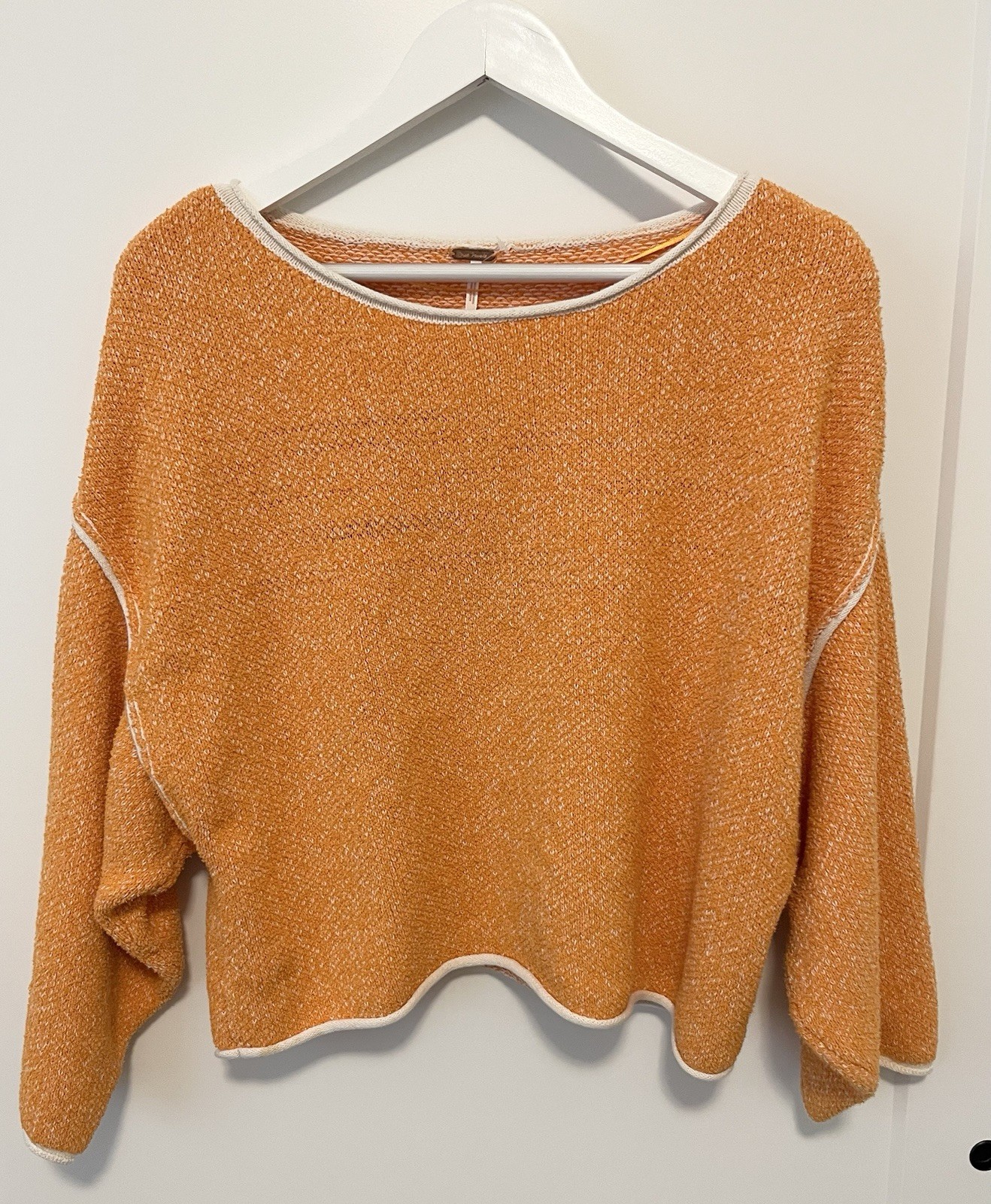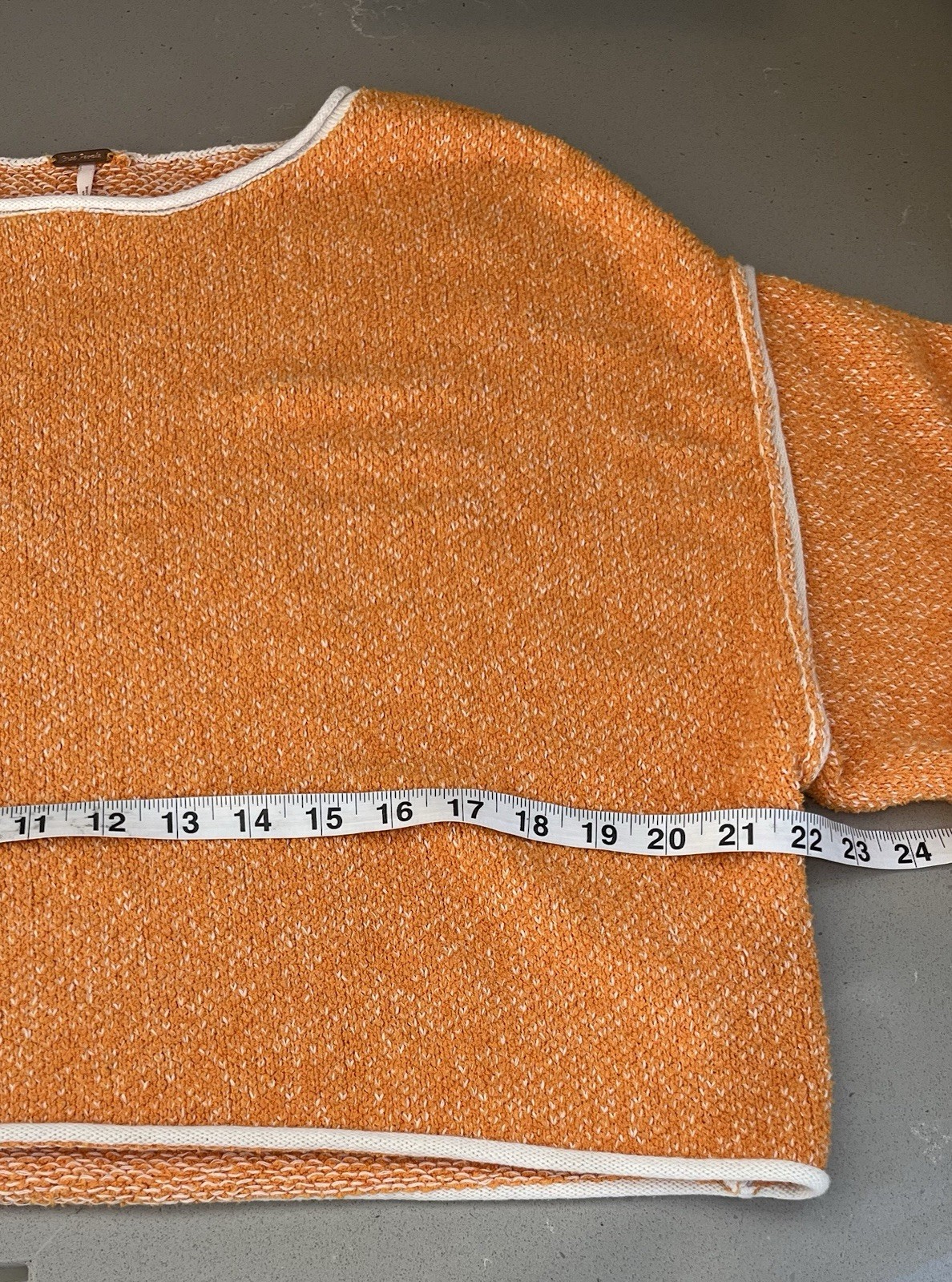 Free People Bardot Cropped Orange Textured Knit Boat Neck Long Sleeve Sweater XS