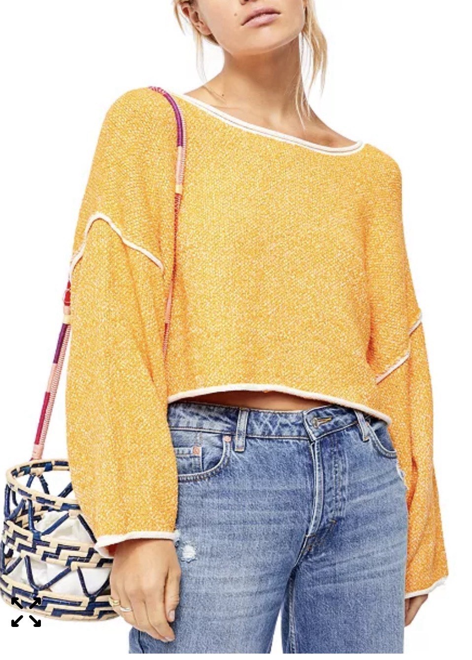 как выглядит Free People Bardot Cropped Orange Textured Knit Boat Neck Long Sleeve Sweater XS фото