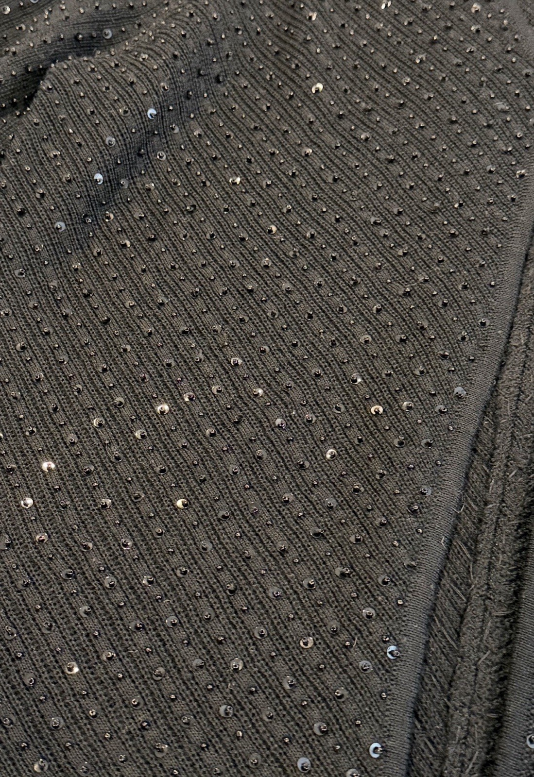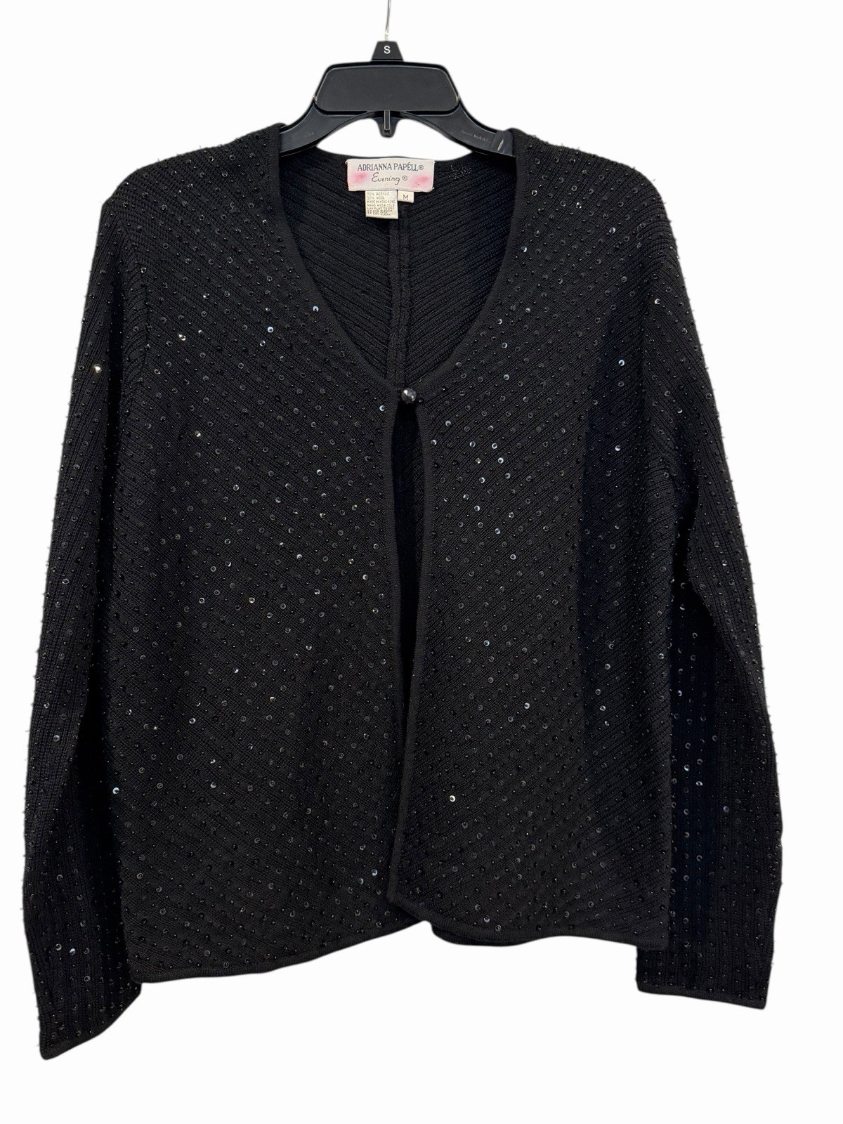 Adrianna Papell Black Sequin Open Front Wool Blend Cardigan Embellishments: M