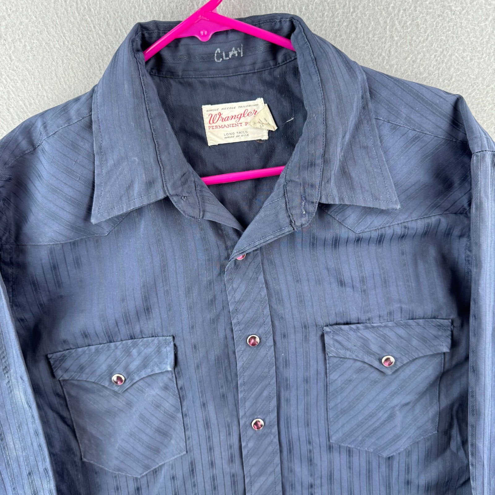 Vintage 70s Wrangler Shirt Mens 17 - 35 Blue Striped Pearl Snap Western USA