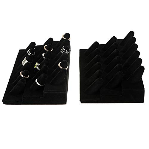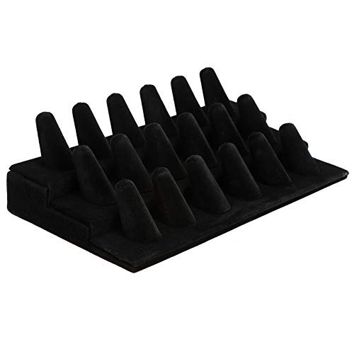 2 Pack Finger Ring Display Black Velvet 18 Slot Jewelry Counter Showcase