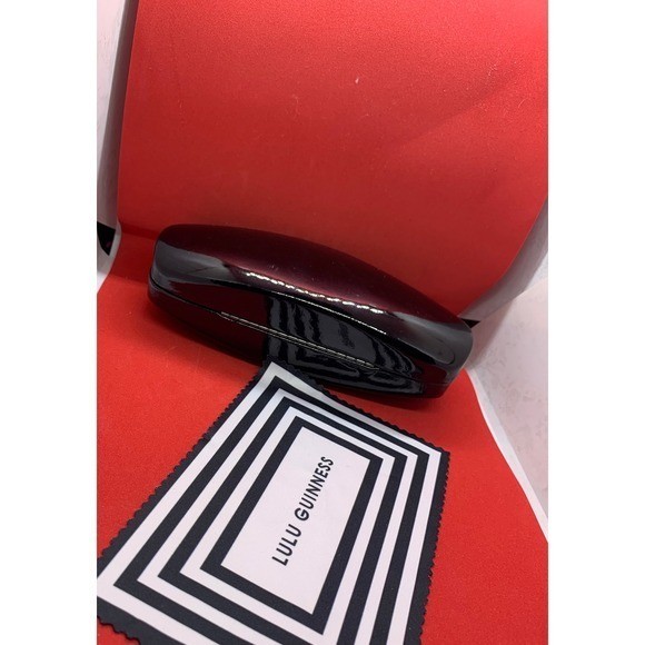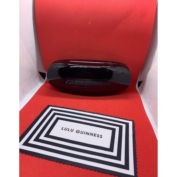 Lulu Guinness Black Patent Eyeglass Case Red Velvet Interior with Cleaning Cloth