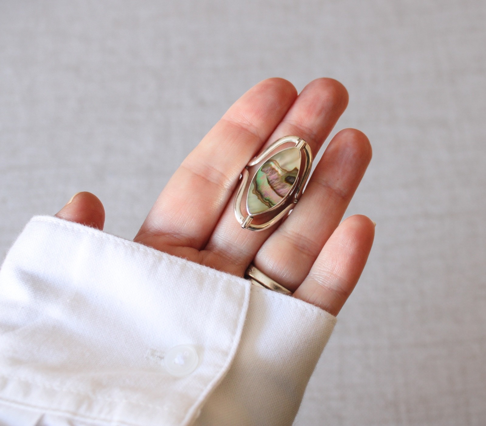Vintage Mexican Sterling Silver Reversible Statement Ring Abalone Red Stone