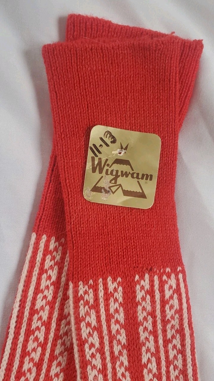 WIGWAM Knicker Socks Vintage Foot Hugger Wool 11-13 Red White Wool Blend New NWT