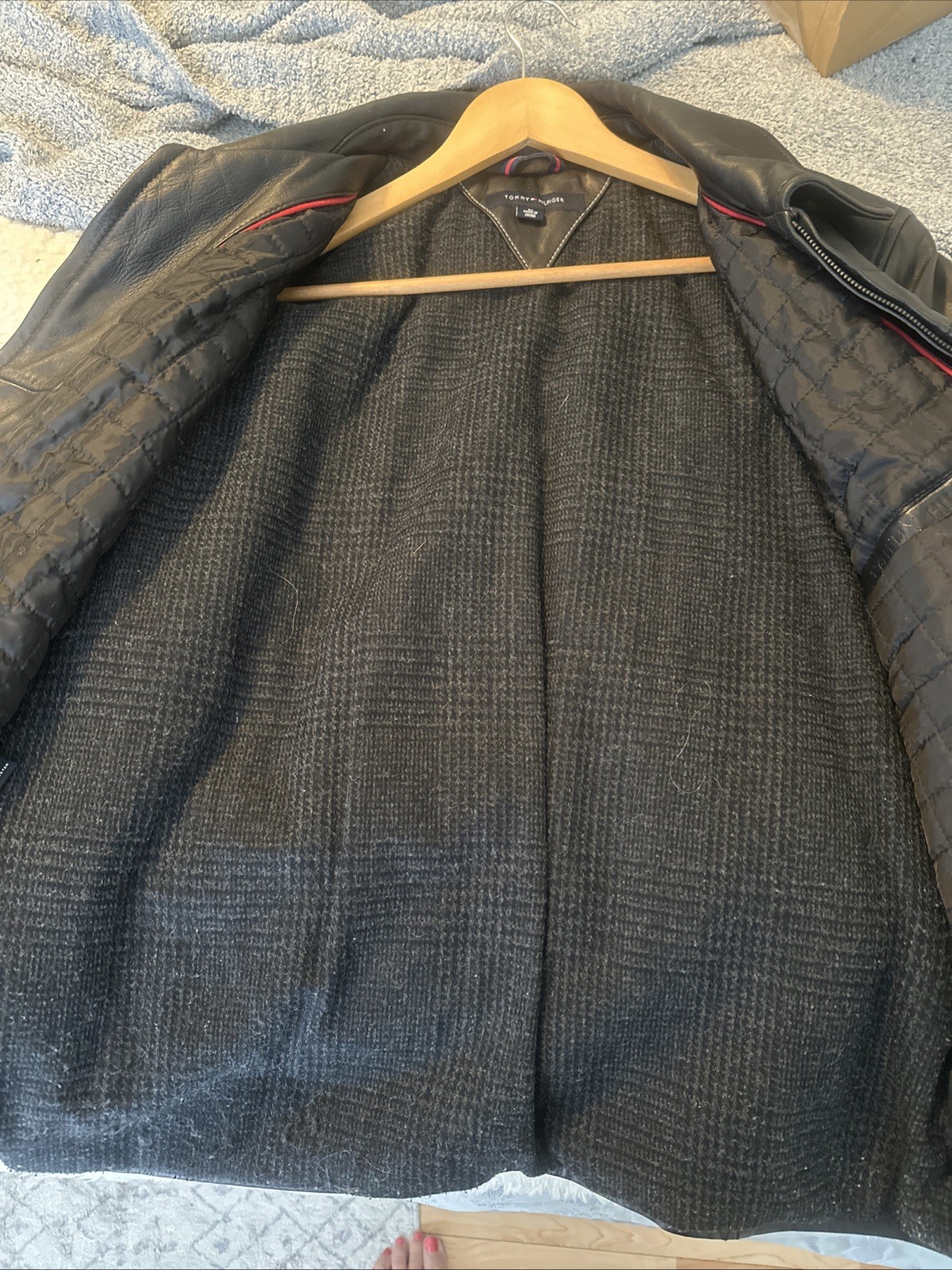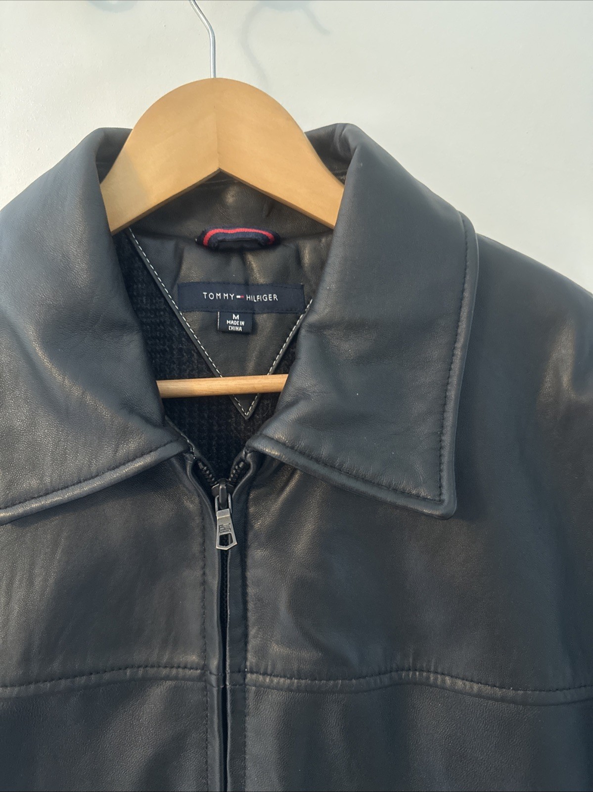 как выглядит Vintage Tommy Hilfiger Men s L Smooth Genuine Leather Fullzip Lined Black Jacket фото