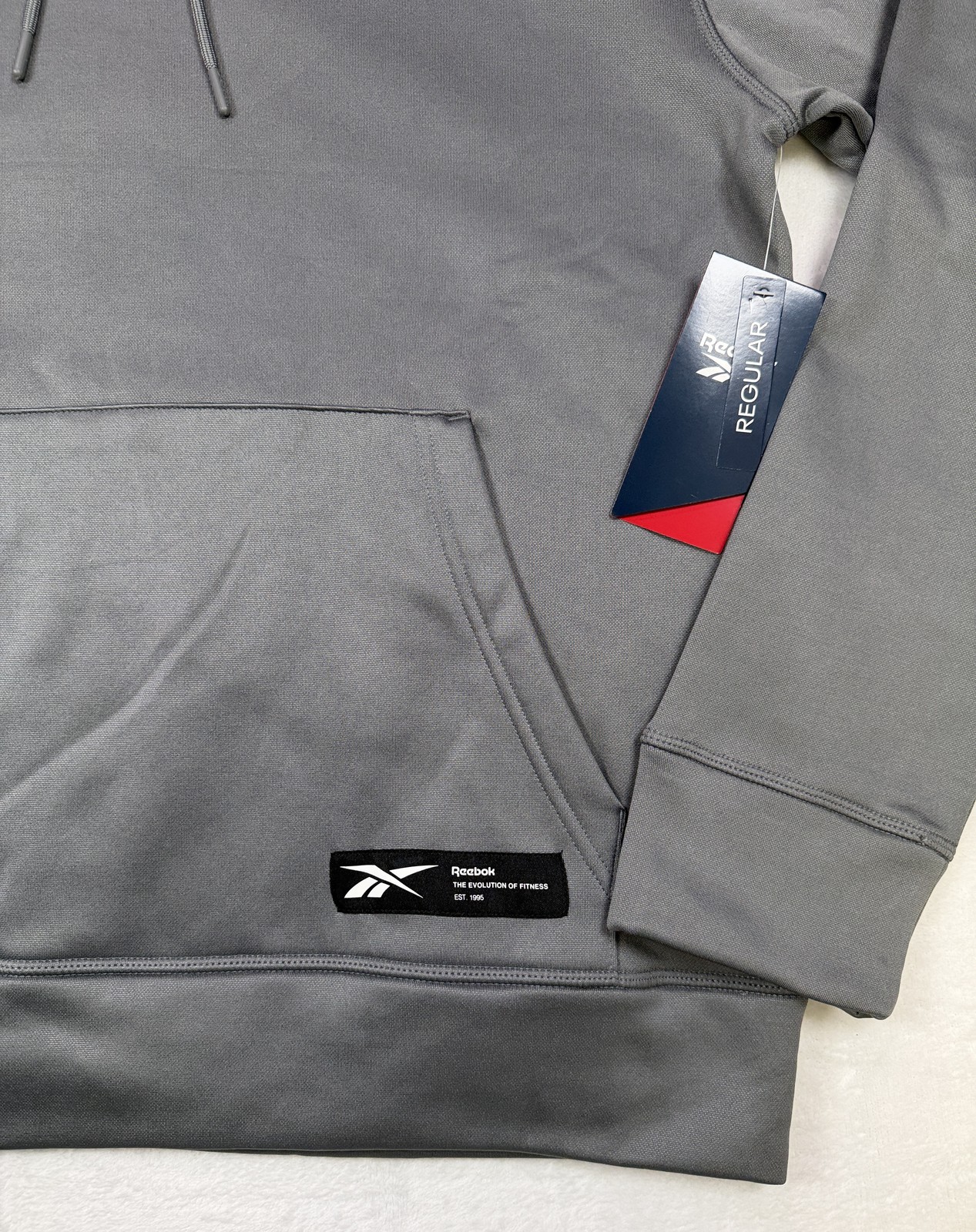 как выглядит Reebok Mens Sweater Hoodie Size Medium Gray Silver Performance Pullover Casual фото