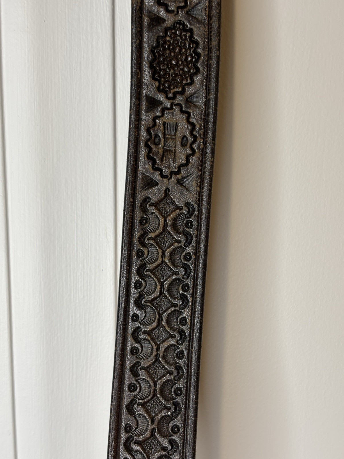 как выглядит VTG Western Unisex Size 34 Tooled Leather Belt Made In Mexico Brown - No Buckle фото