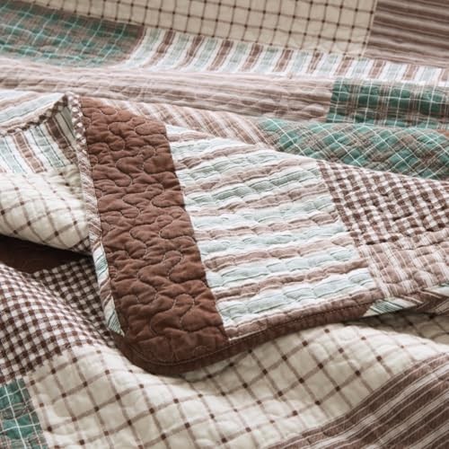 Plaid Quilt King Size, 100 Cotton Patchwork 106x98 King Brown/Green/Cream