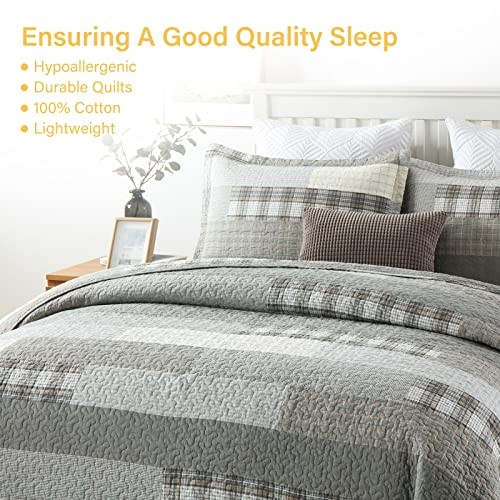 Quilt Queen Size, Queen Quilt Set, 100 Cotton Queen Queen 90x98 Grey/Cream