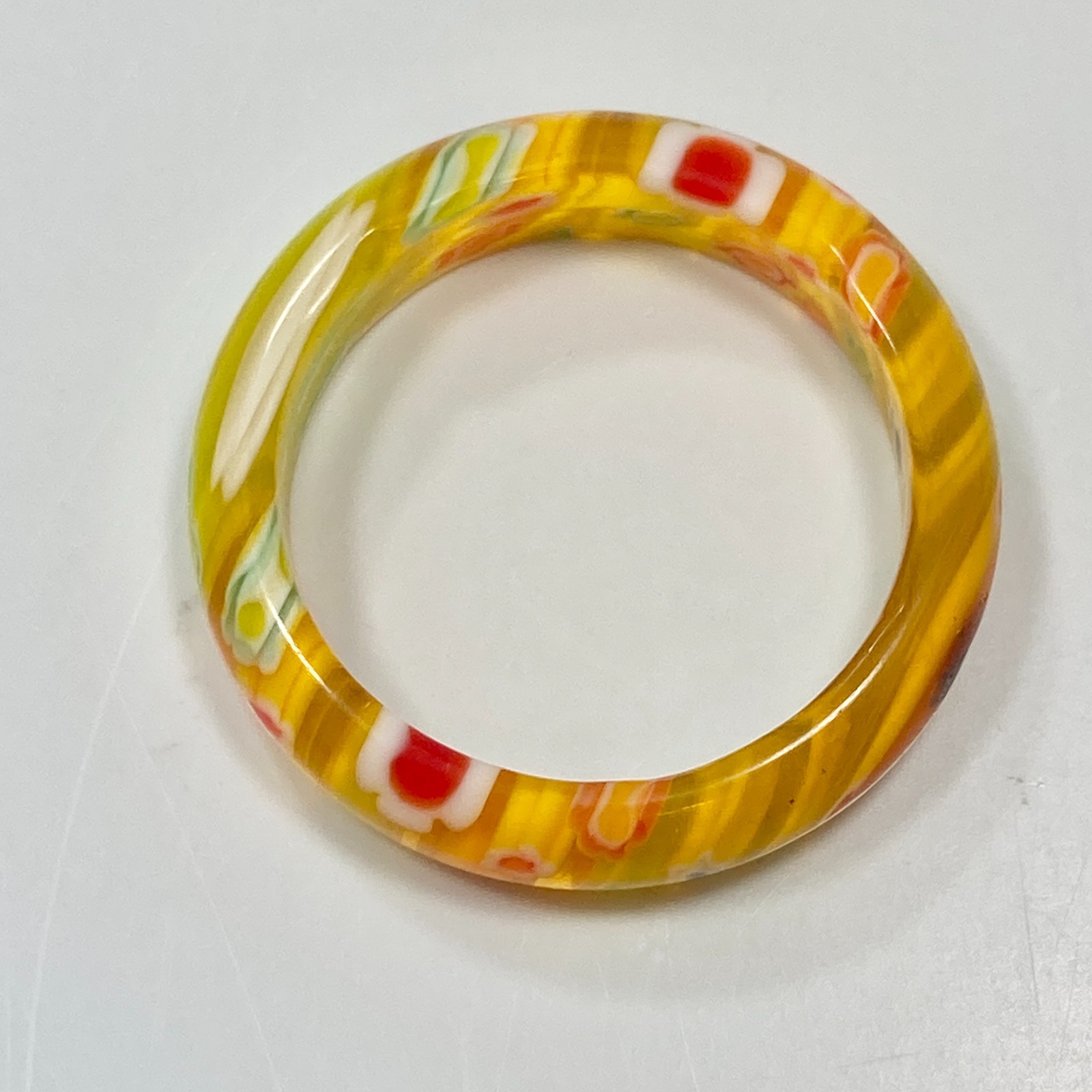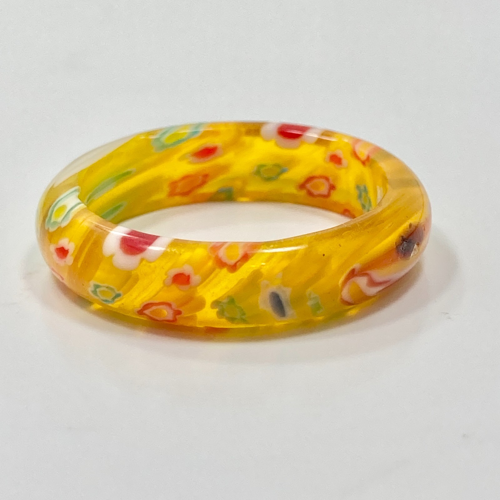 Vintage Millefiori Murano Glass Ring Band Size 8 Multicolor Flowers Yellow Red